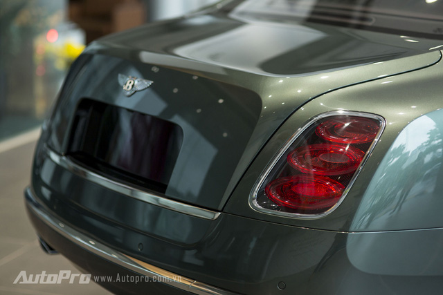 Bentley Mulsanne Speed 2016 nhìn từ phía sau khá giống với phiên bản Mulsanne thường. Chiếc xe Bentley Mulsanne Speed 2016 mới Việt Nam sở hữu màu xanh diệp lục độc nhất vô nhị.