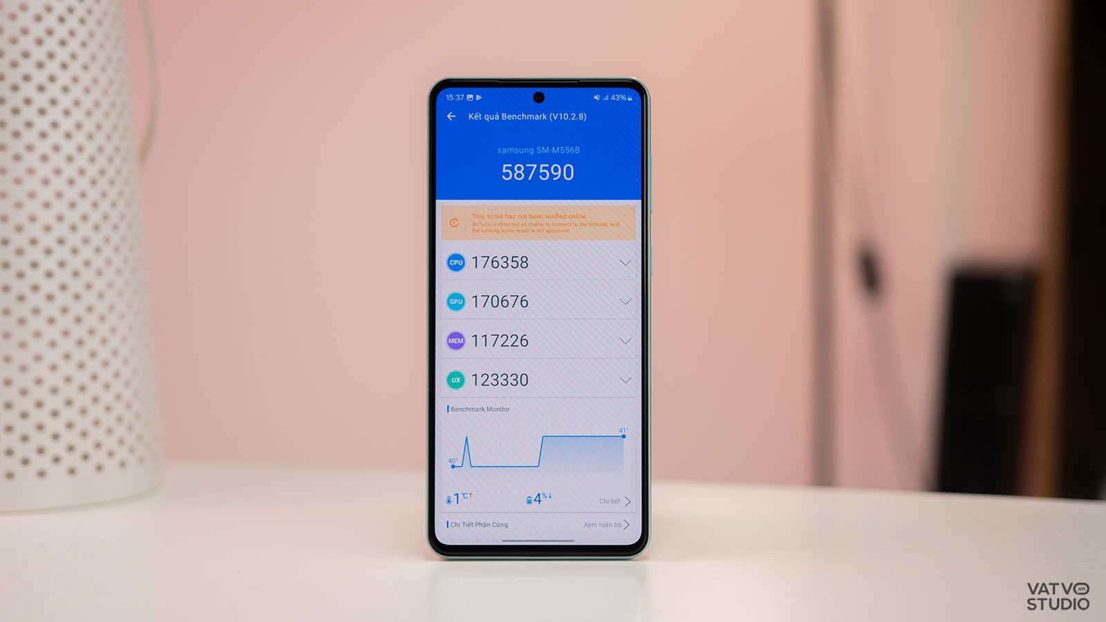| Với Snapdragon 7 Gen 1, Galaxy M55 5G chỉ đạt gần 600 nghìn điểm AnTuTu Benchmark |