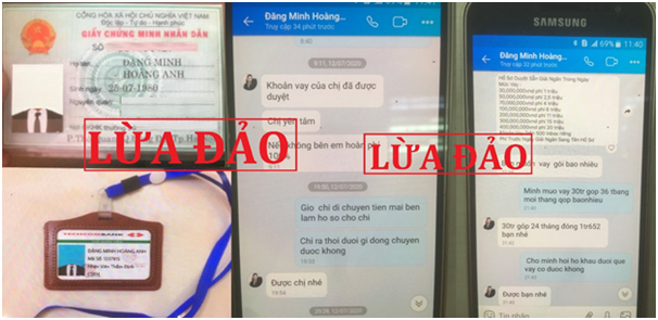 Khi có người vay tiếp cận, các đối tượng sẽ dẫn dụ, yêu cầu người vay cung cấp thông tin cá nhân, như: họ tên, số điện thoại, ảnh chụp CMND/CCCD, ảnh chụp chân dung… phục vụ làm hồ sơ vay, sau đó các đối tượng yêu cầu người vay phải chuyển trước một số khoản tiền nhỏ khoảng từ 500 ngàn đồng đến 5 triệu đồng để phục vụ hỗ trợ xác minh, duyệt khoản vay… Sau khi dụ người vay chuyển tiền phục vụ hỗ trợ xác minh, duyệt khoản vay, các đối tượng tiếp tục viện dẫn hàng loạt các lý do khoản vay không được giải ngân xuất phát từ lỗi khai hồ sơ của người vay như khai sai tên người hưởng thụ, đổi cách viết tên người hưởng thụ từ chữ in thường sang in hoa... Từ đó, chúng yêu cầu người vay phải nộp thêm các khoản tiền để bảo đảm khoản vay hoặc khắc phục lỗi hệ thống; hứa hẹn sẽ hoàn trả lại số tiền đã gửi cho khách hàng sau khi khoản vay được giải ngân. Tuy nhiên, khi người vay chuyển tiền vào số tài khoản của các đối tượng cung cấp, các đối tượng sẽ lập tức chiếm đoạt và ngắt liên lạc. Trường hợp khách hàng không chuyển tiền theo yêu cầu, chúng sẽ đe dọa khách hàng là khoản vay khách hàng bị chuyển thành nợ xấu để yêu cầu phải chuyển tiền.