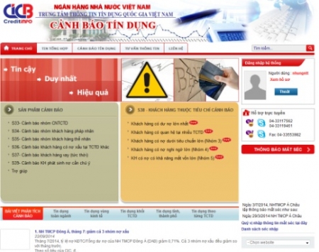 Đây là website nội bộ và duy nhất của ngành Ngân hàng chỉ phản ánh những thông tin cảnh báo về tình hình nợ xấu của khách hàng trong toàn hệ thống. Ngoài các tin tức tổng hợp và bài phân tích chuyên sâu, website này đã cung cấp tới khách hàng 6 sản phẩm cảnh báo: Cảnh báo nhóm khách hàng pháp nhân và thể nhân có nợ xấu lớn nhất (S34, S35); Cảnh báo khách hàng của chi nhánh TCTD có nợ xấu tại chi nhánh TCTD khác (S36); Cảnh báo khách hàng vay tức thời (S37); Danh mục khách hàng thuộc tiêu chí cảnh báo (S38); Khách hàng có phát sinh nợ cần chú ý trong kỳ (S39).