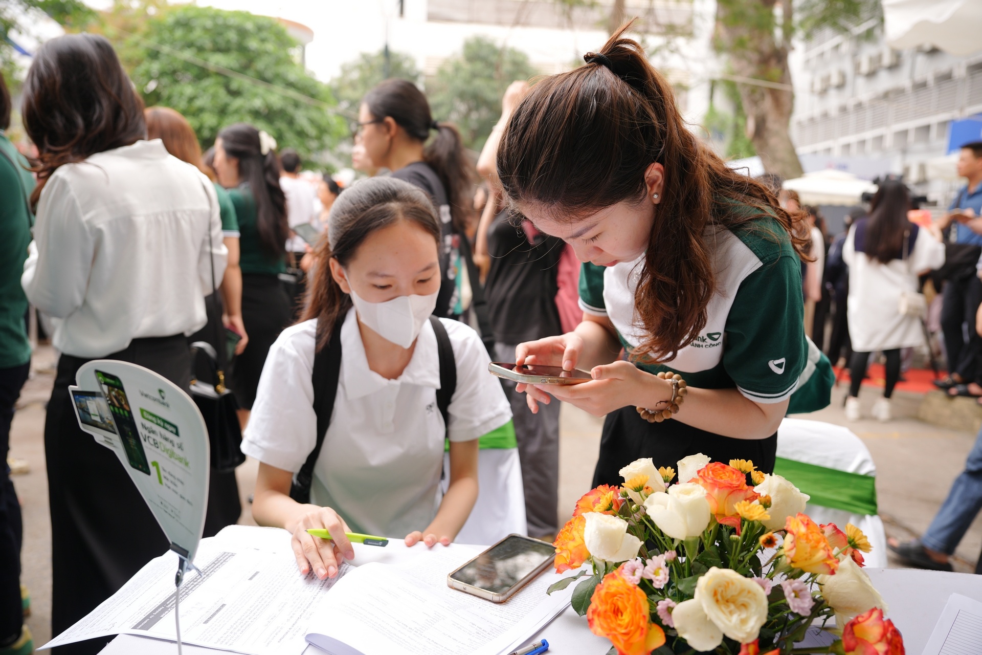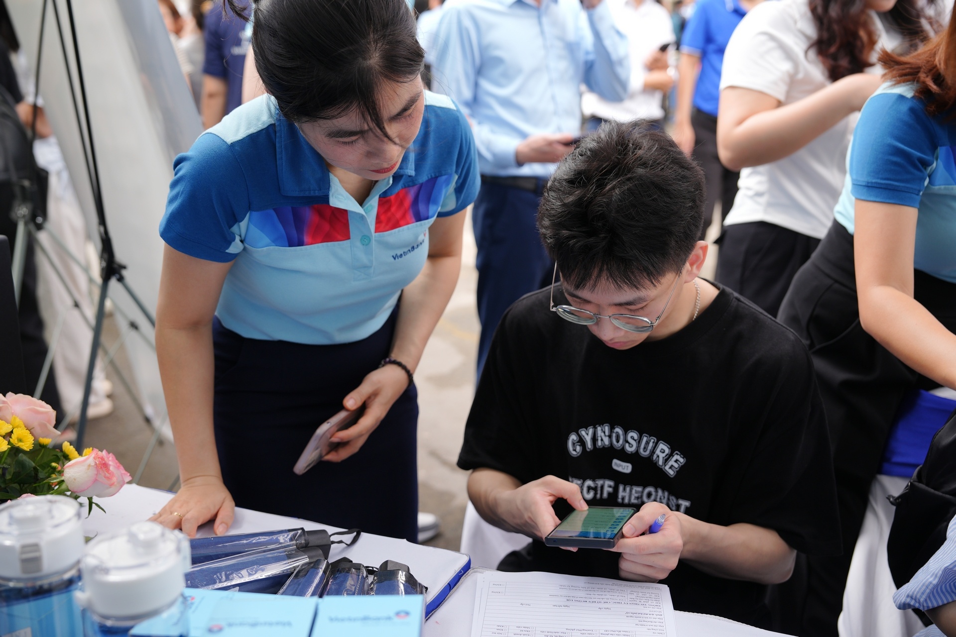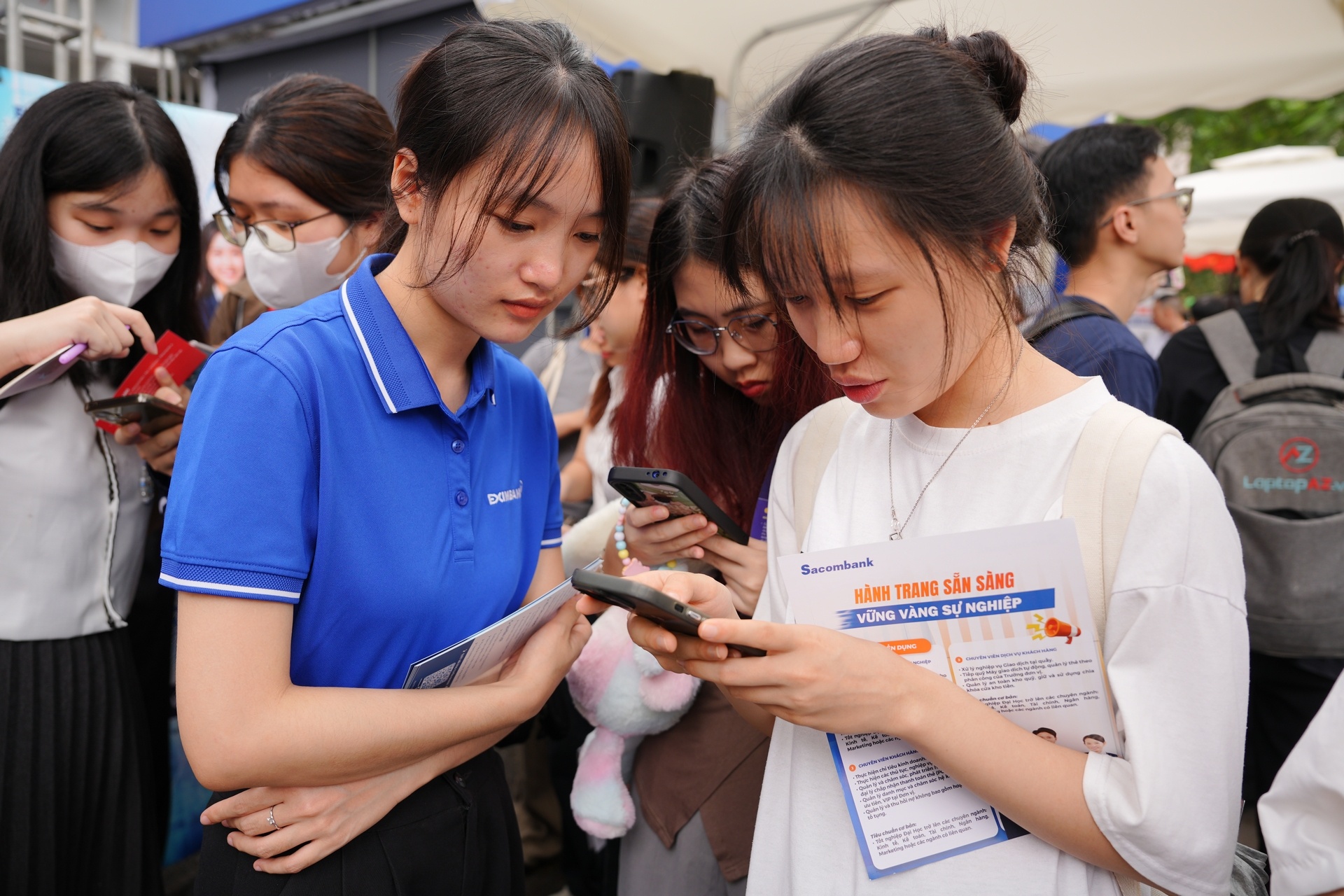 | Sinh viên tự tin khám phá cơ hội việc làm tại gian hàng của Vietcombank |