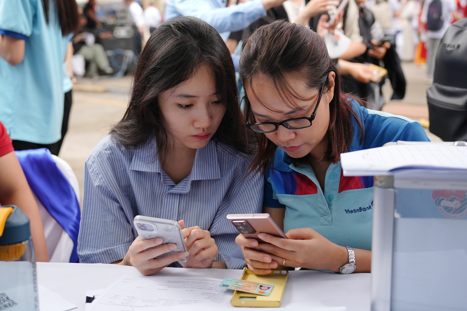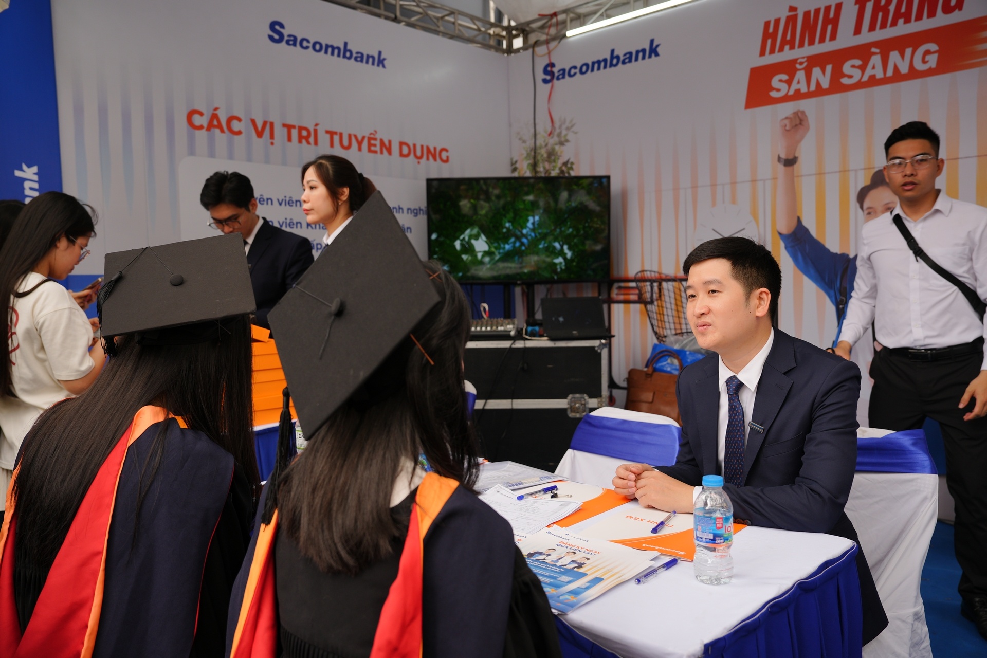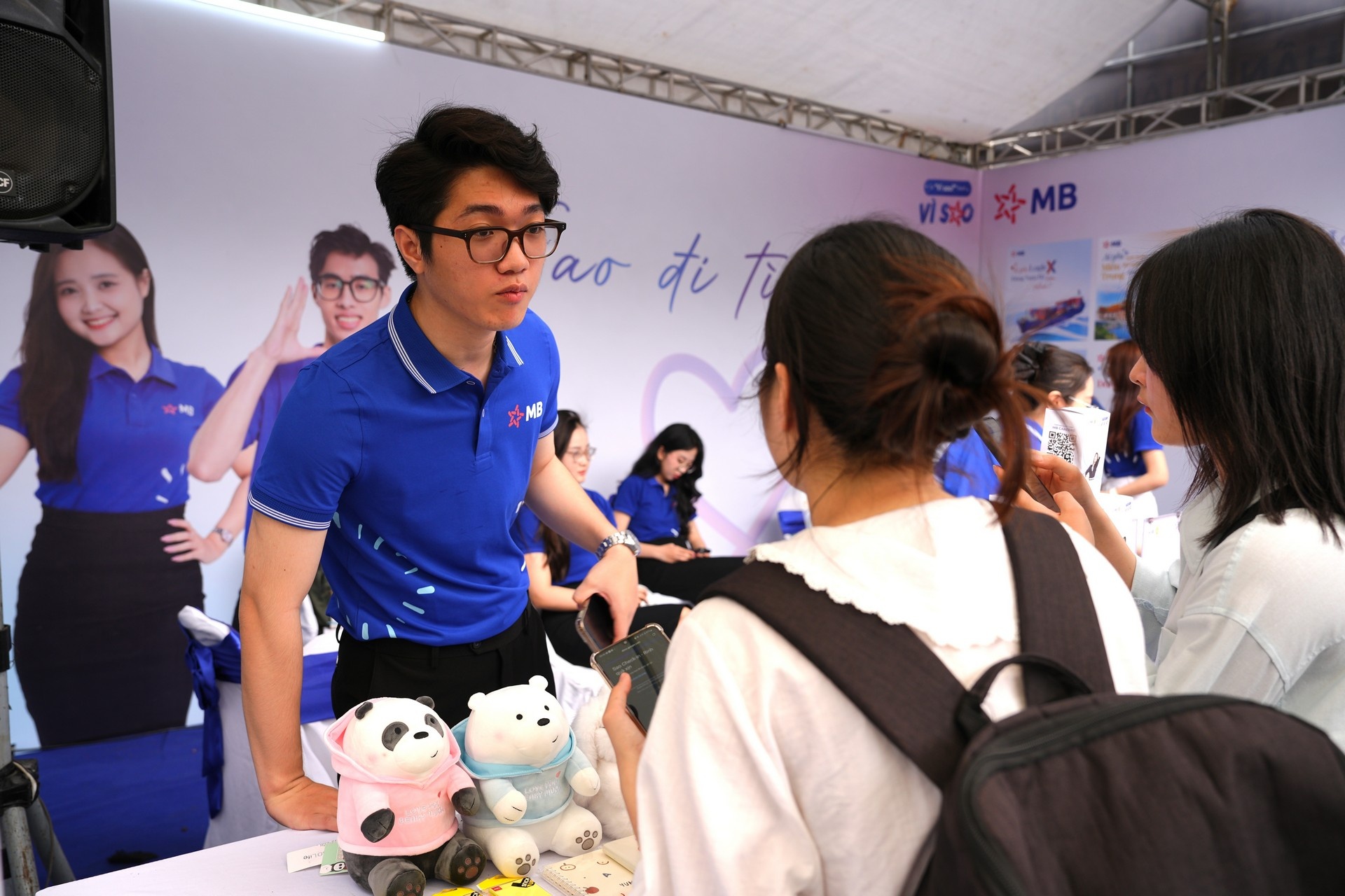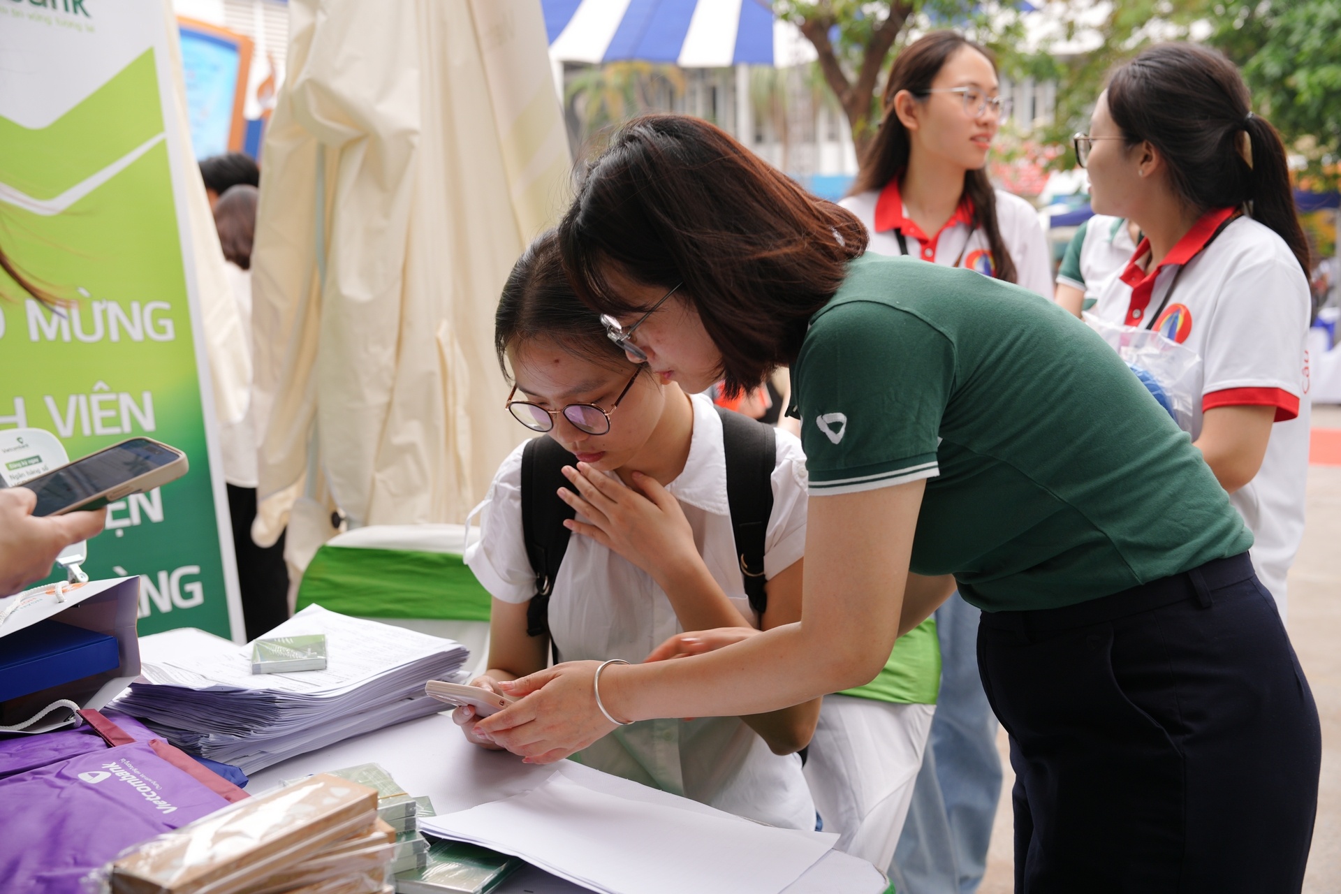 | Sinh viên tự tin khám phá cơ hội việc làm tại gian hàng của Vietcombank |