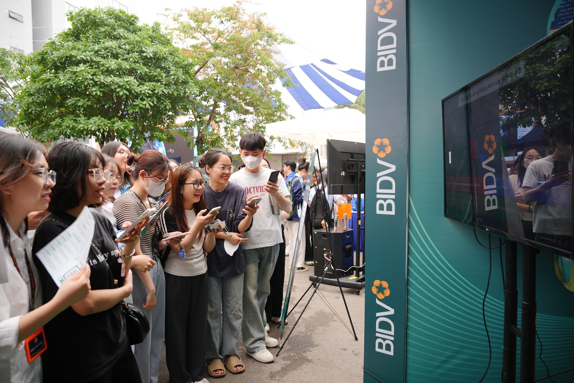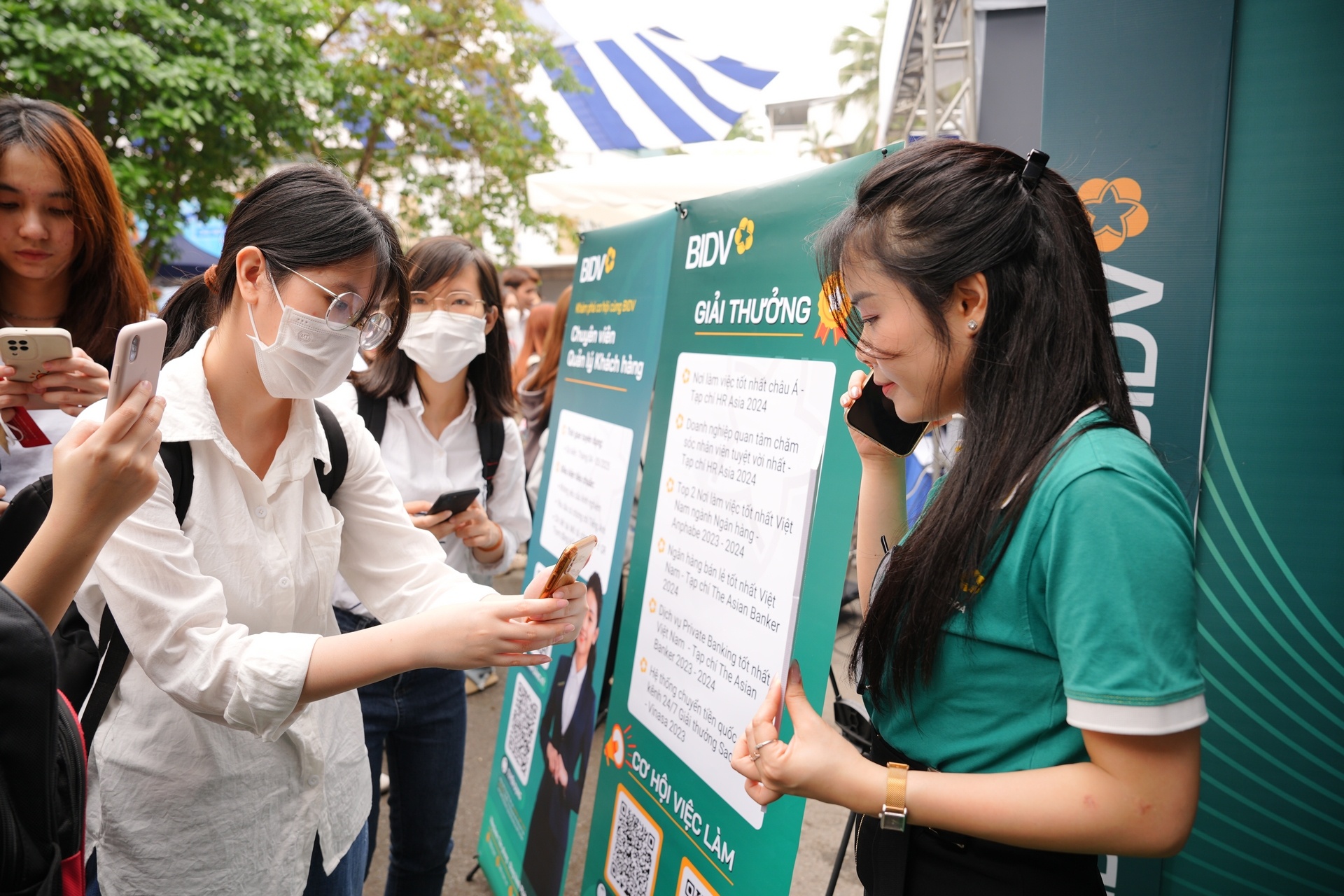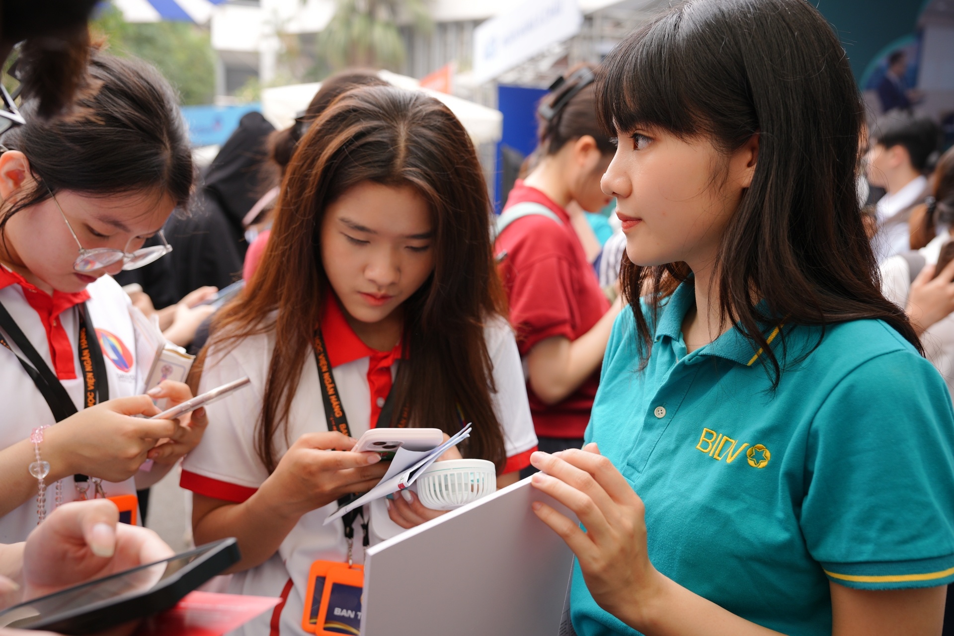 | Sinh viên tranh thủ kết nối với các nhà tuyển dụng của BIDV |