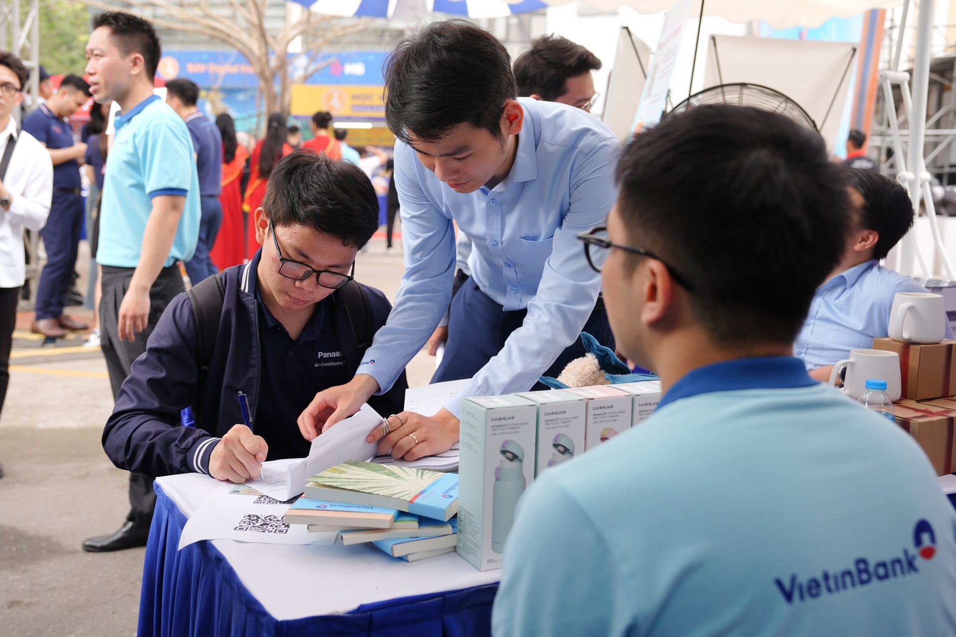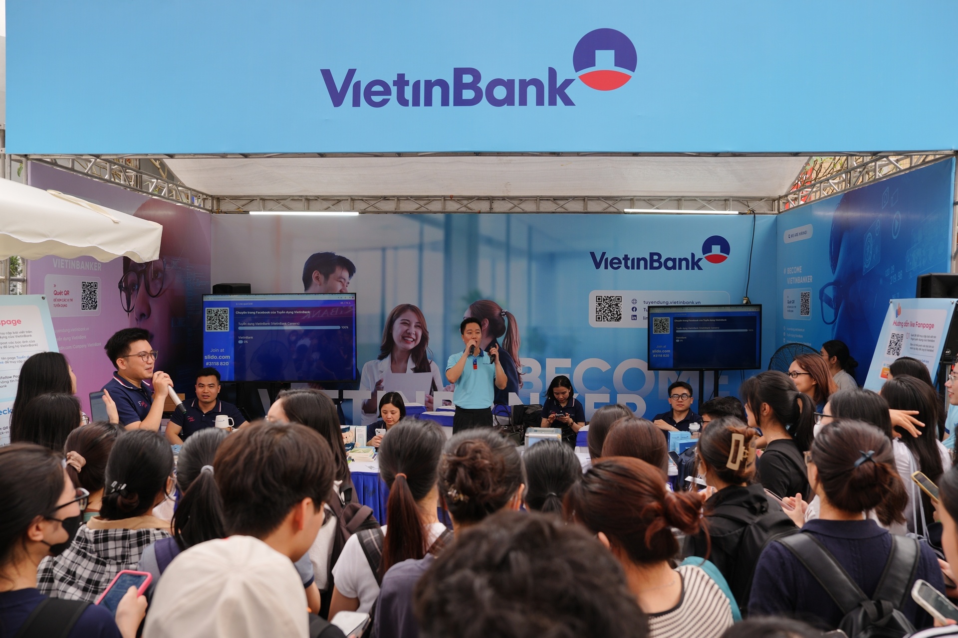 | Gian hàng của VietinBank đông kín sinh viên tìm hiểu cơ hội nghề nghiệp |
