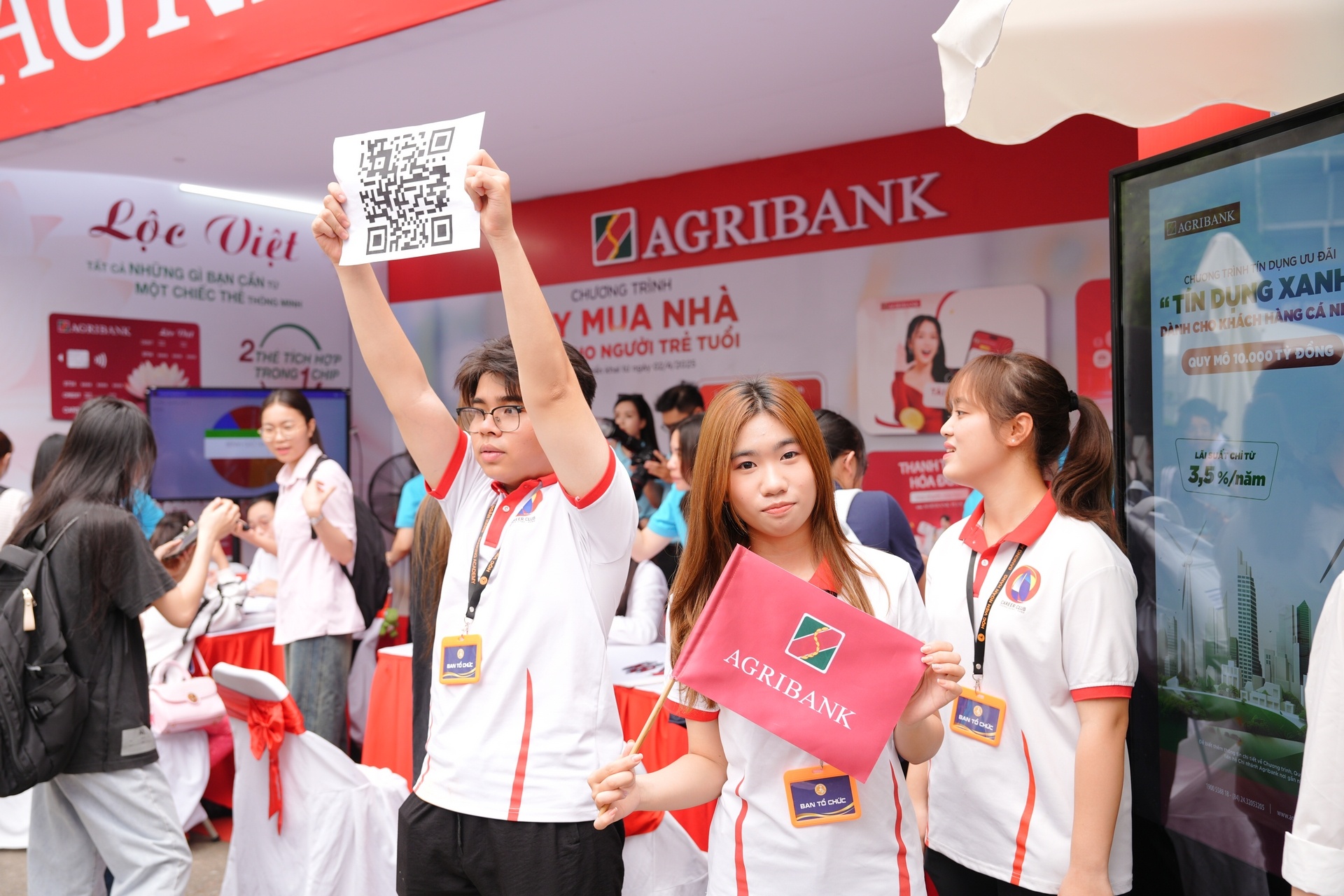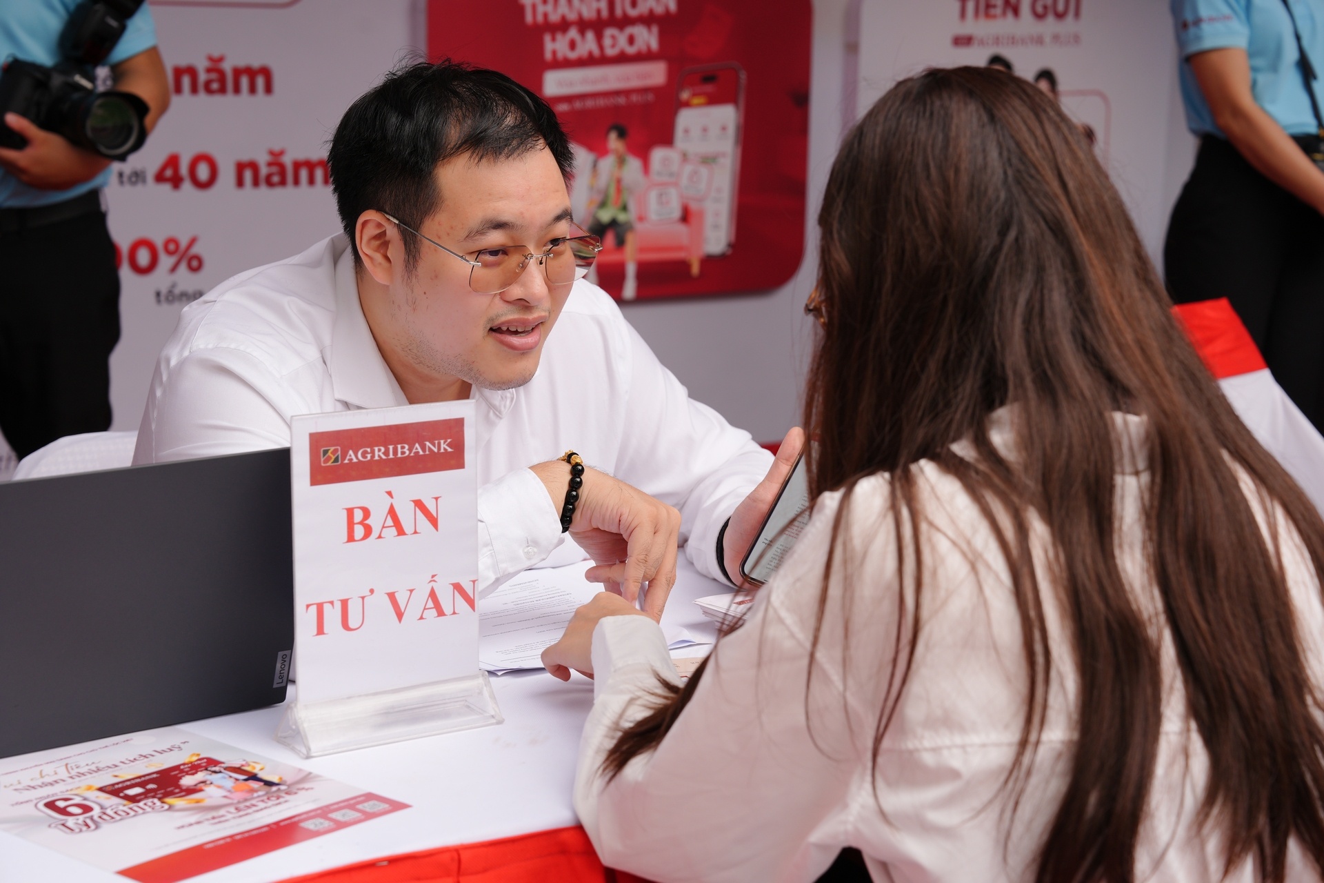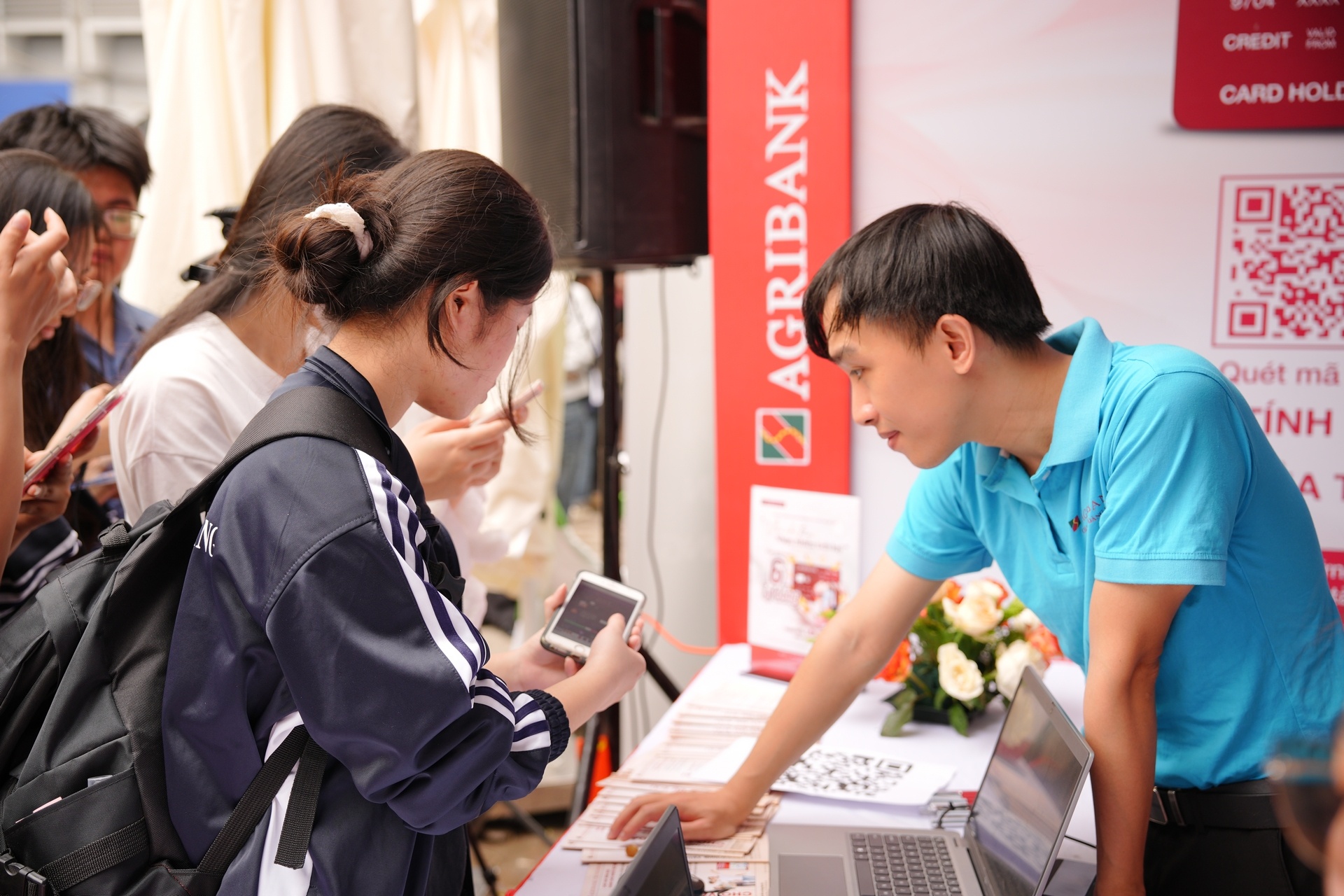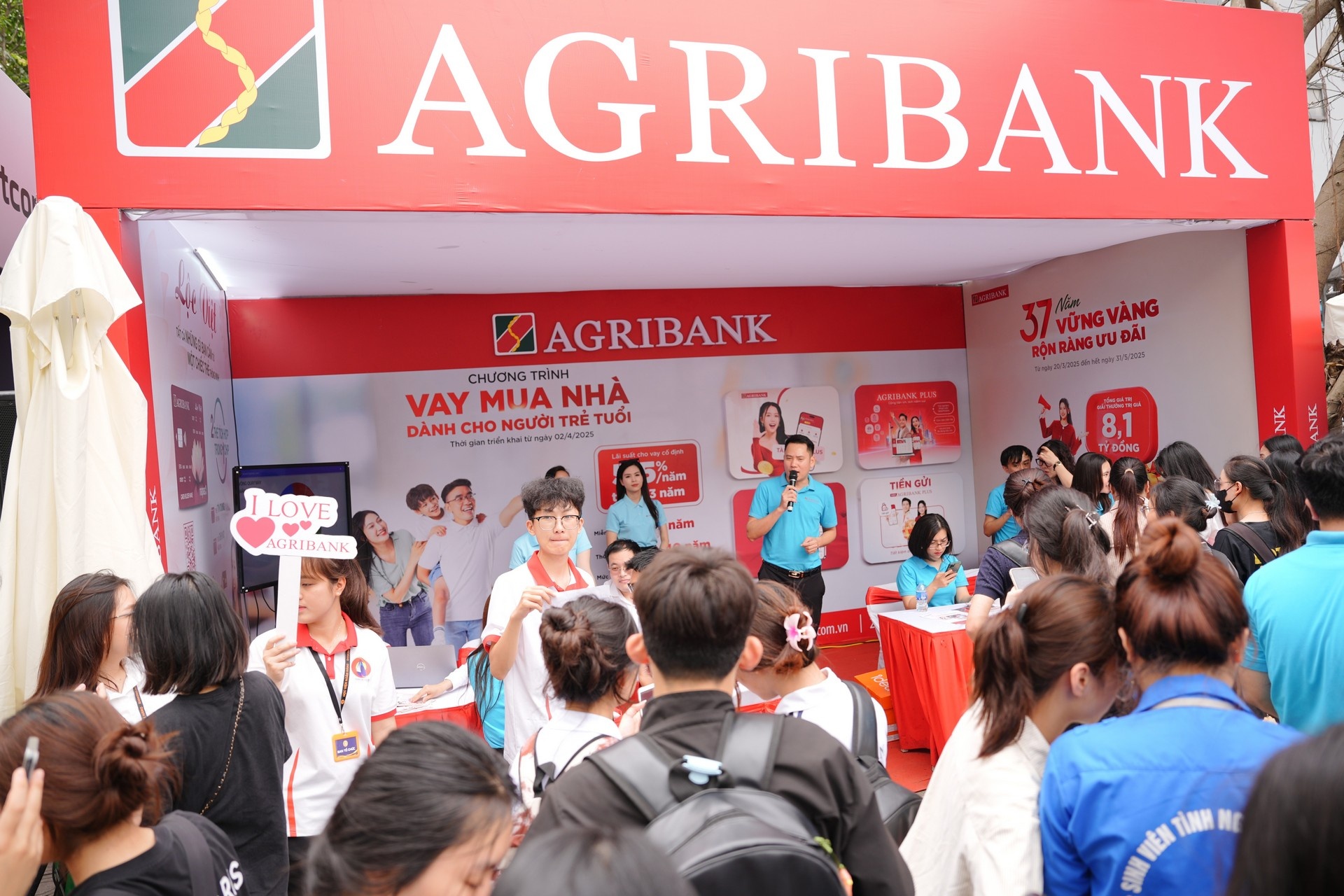 | Gian hàng của Agribank thu hút rất đông các bạn sinh viên |