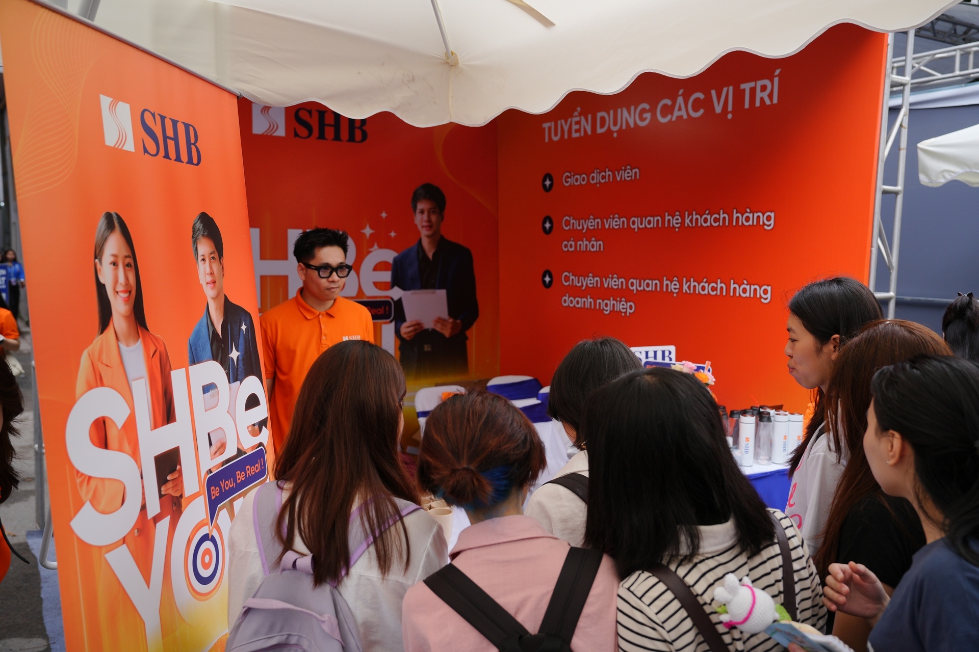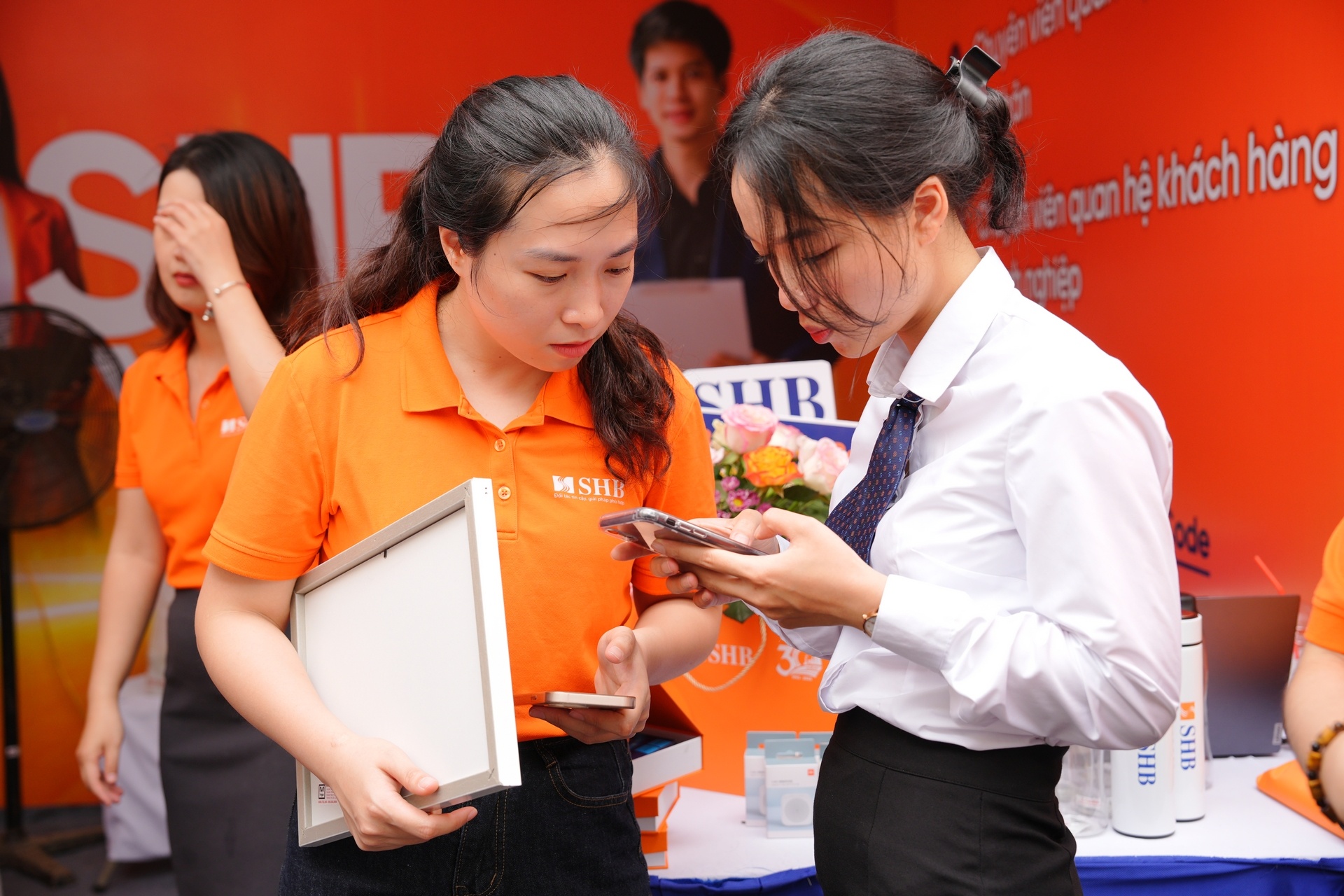 | Không khí náo nhiệt tại gian hàng tư vấn của SHB |
