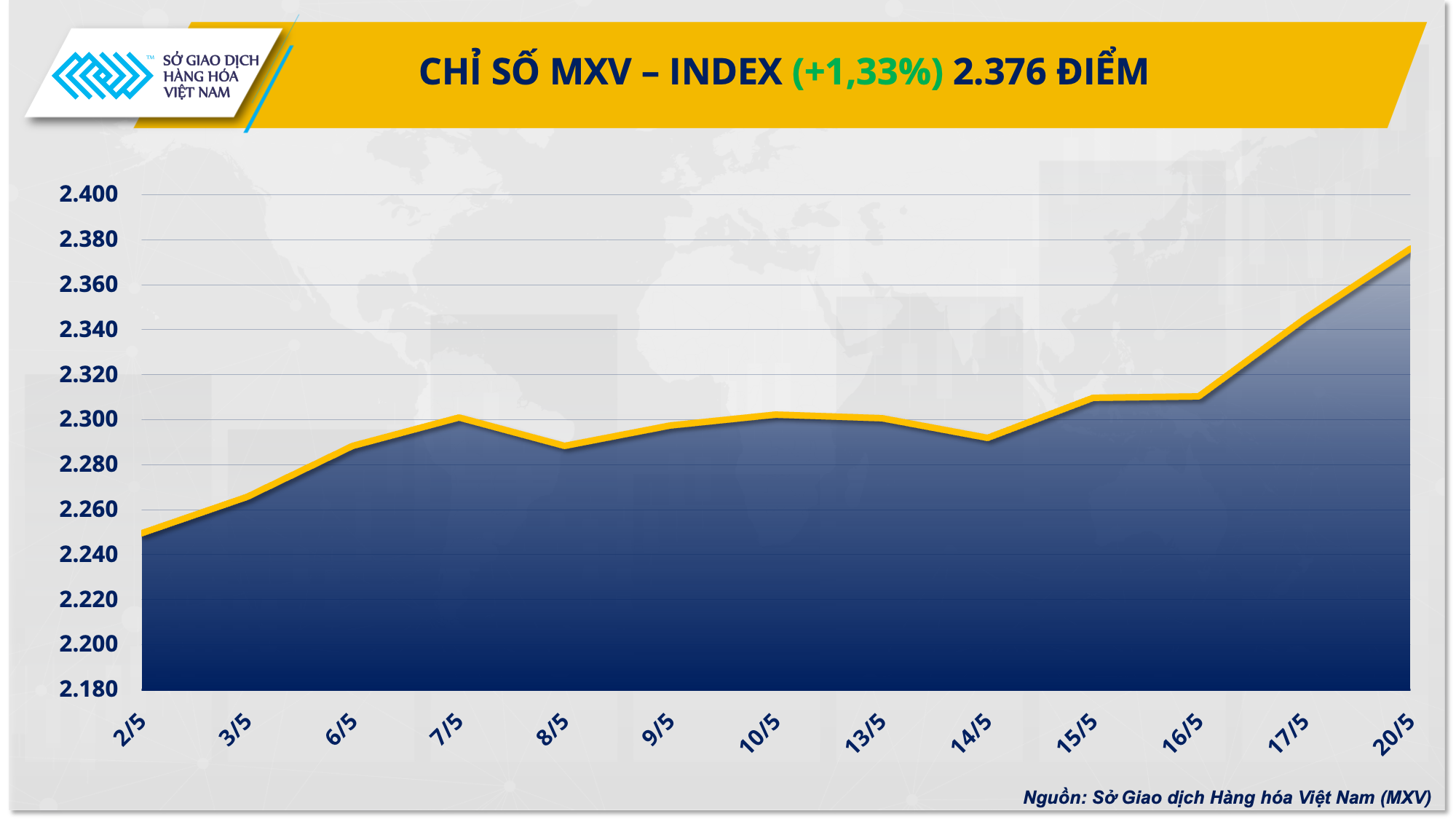 Chỉ số hàng hóa MXV-Index lên mức cao nhất từ tháng 2/2023
