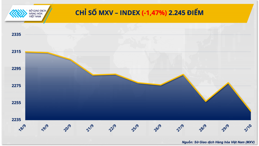Chỉ số hàng hóa xuống mức thấp nhất 1 tháng