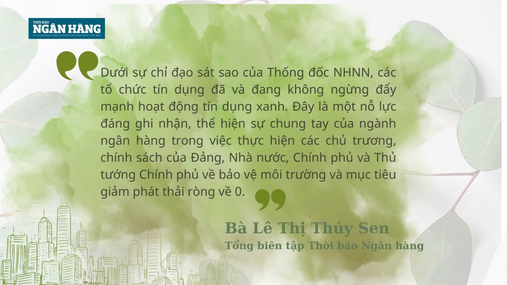 Về phía ngành Ngân hàng, dưới sự chỉ đạo sát sao của Thống đốc Ngân hàng Nhà nước, các tổ chức tín dụng đã và đang không ngừng đẩy mạnh hoạt động tín dụng xanh. Đây là một nỗ lực đáng ghi nhận, thể hiện sự chung tay của ngành ngân hàng trong việc thực hiện các chủ trương, chính sách của Đảng, Nhà nước, Chính phủ và Thủ tướng Chính phủ về bảo vệ môi trường và mục tiêu giảm phát thải ròng về 0.