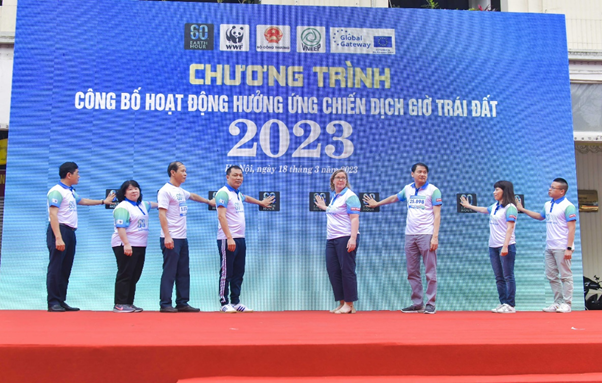 Tại buổi lễ, Thứ trưởng Bộ Công Thương Đặng Hoàng An; Phó trưởng ban Đối ngoại Trung ương Trương Quang Hoài Nam; Trưởng ban Hợp tác, Phái đoàn Liên minh châu Âu tại Việt Nam, bà Kristina Bünde cùng lãnh đạo các đơn vị: Vụ Tiết kiệm năng lượng và Phát triển Bền vững (Bộ Công Thương), Tạp chí Công Thương, Tập đoàn Điện lực Việt Nam, Daikin Việt Nam cùng thực hiện nghi thức phát động Chiến dịch Giờ Trái đất năm 2023.