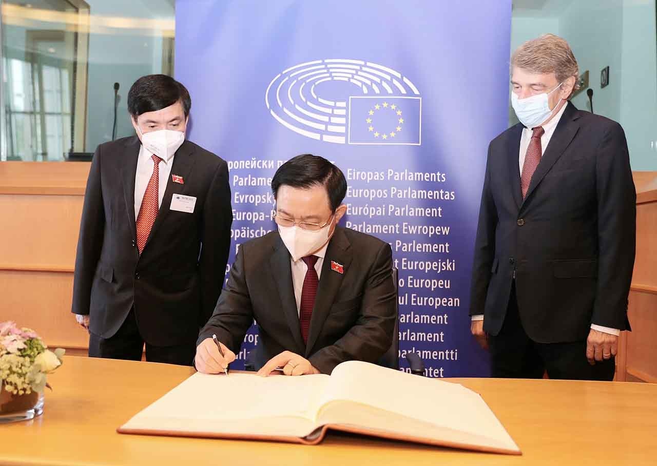 Chủ tịch Nghị viện châu Âu David Sassoli chào đón Chủ tịch Quốc hội Vương Đình Huệ và Đoàn đại biểu cấp cao Quốc hội Việt Nam đã chọn Nghị viện châu Âu là là điểm đến trong chuyến công tác đầu tiên trên cương vị Chủ tịch Quốc hội Việt Nam. Chủ tịch Nghị viện David Sassoli đánh giá cao vai trò của Việt Nam ở khu vực; Nhấn mạnh, EP và Việt nam chia sẻ lợi ích trong nhiều lĩnh vực và mong muốn cùng Việt Nam tăng cường hợp tác mọi mặt như thương mại và đầu tư, phòng chống dịch bệnh Covid-19, cùng ứng phó với biến đối khí hậu trong đó có thách thức đối với tài nguyên nước, tình trạng xâm nhập mặn, khô hạn đang diễn ra trên sông Mê kông ảnh hưởng nghiêm trọng đến sản xuất và đời sống của người dân trong khu vực.