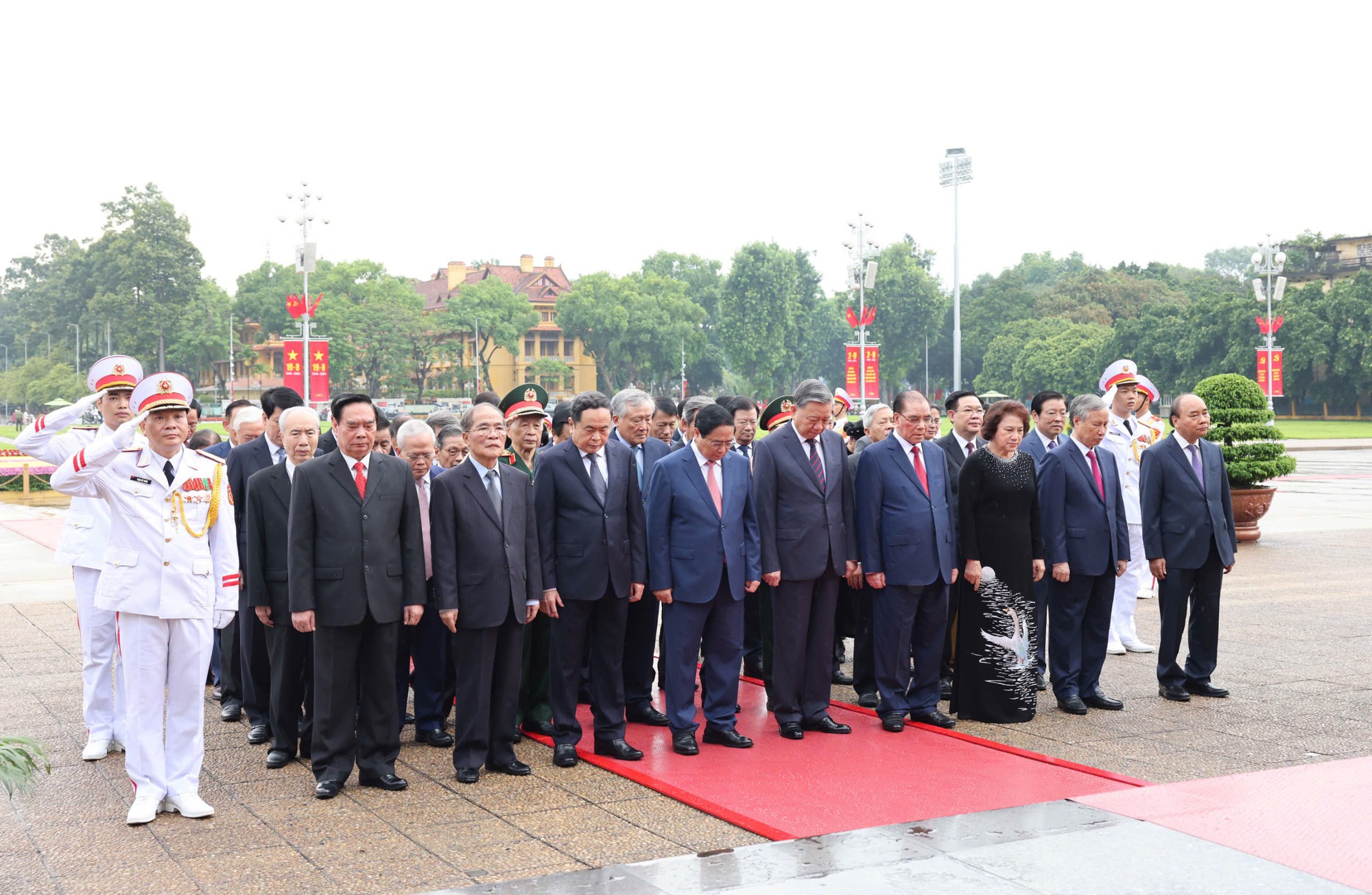 | Các đồng chí lãnh đạo, nguyên lãnh đạo Đảng, Nhà nước đặt vòng hoa và vào Lăng viếng Chủ tịch Hồ Chí Minh |