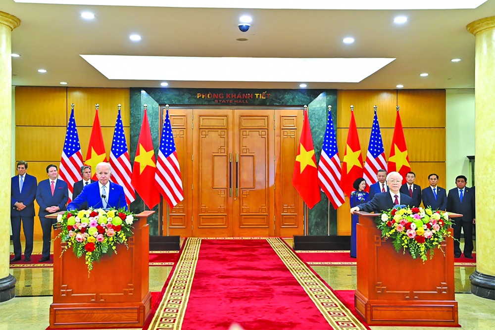 Phát biểu với báo chí sau Hội đàm cấp cao với Tổng thống Joe Biden, Tổng Bí thư Nguyễn Phú Trọng nhấn mạnh, thúc đẩy hợp tác kinh tế - thương mại - đầu tư theo hướng đổi mới sáng tạo là nền tảng, trọng tâm và động lực của quan hệ hai nước; tăng cường hợp tác khoa học - công nghệ là đột phá mới của quan hệ Đối tác Chiến lược Toàn diện vì hòa bình, hợp tác, phát triển bền vững. Về phía mình, Tổng thống Joe Biden cũng khẳng định sẽ tăng cường hợp tác trong các lĩnh vực công nghệ trọng yếu và mới nổi, mở rộng mối quan hệ đối tác kinh tế nhằm thúc đẩy hơn nữa hợp tác đầu tư và thương mại giữa hai nước.
