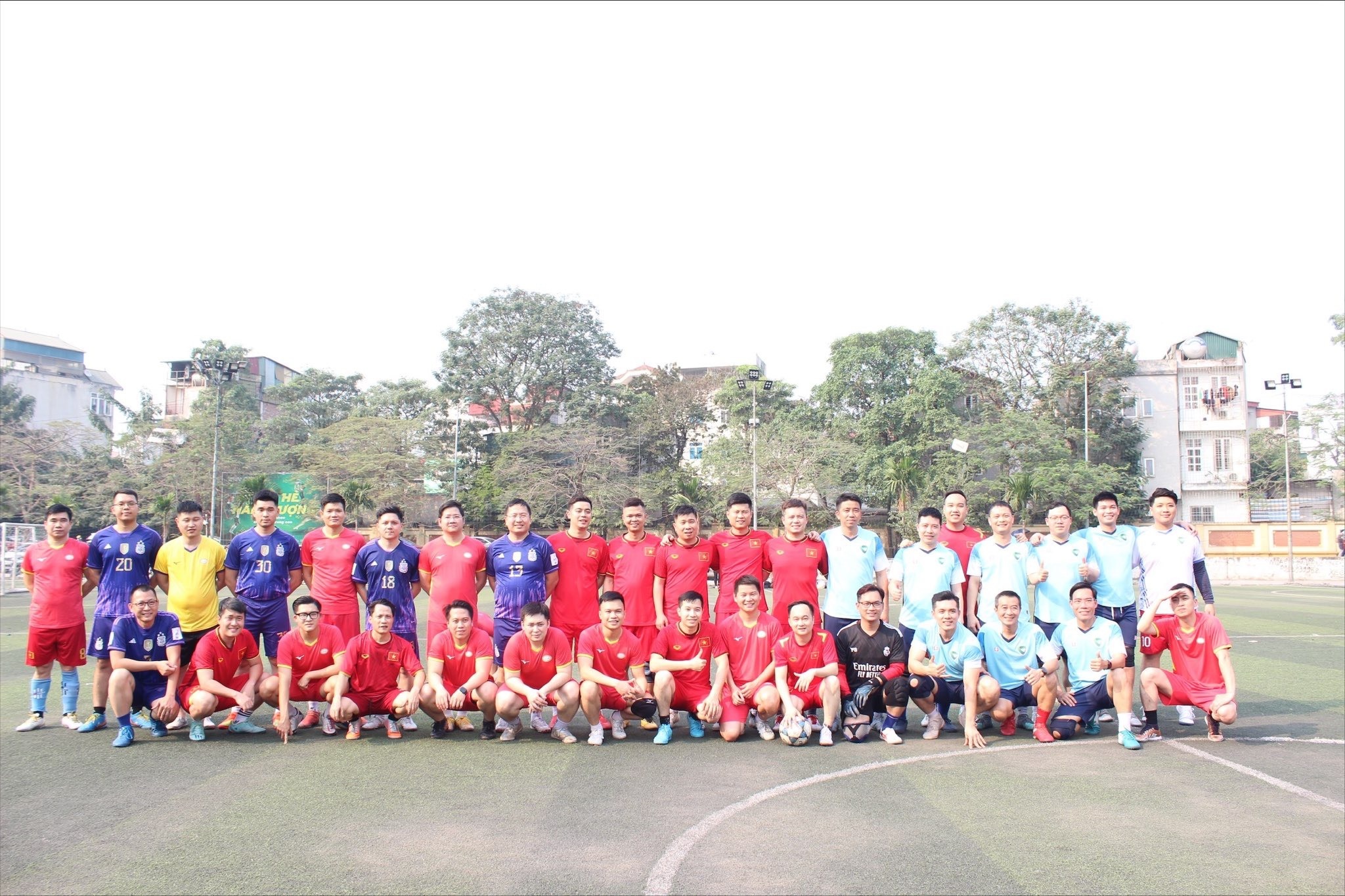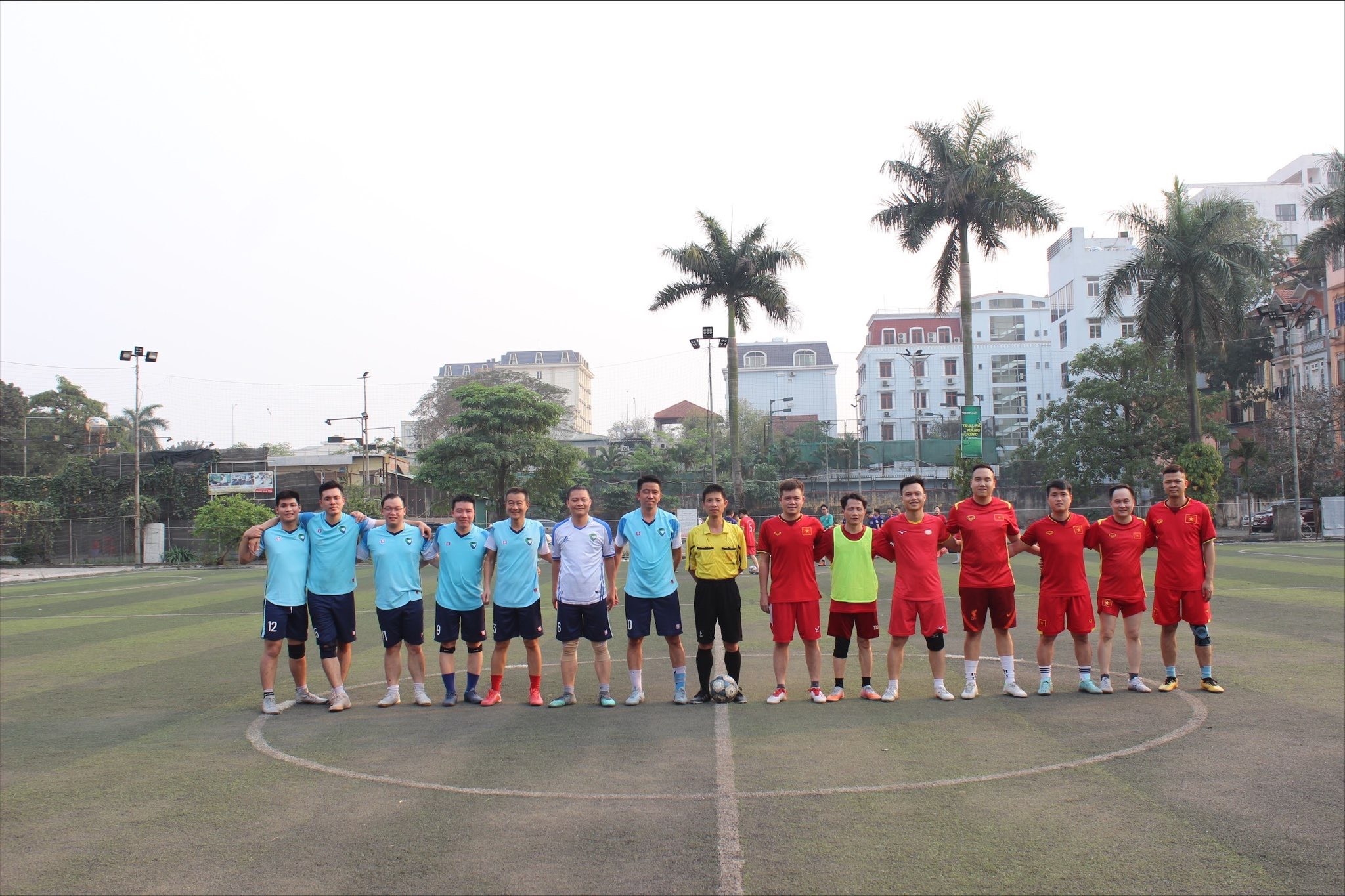 | Đội bóng CIC và VCB Tây Hà Nội chụp ảnh lưu niệm trước trận đấu |