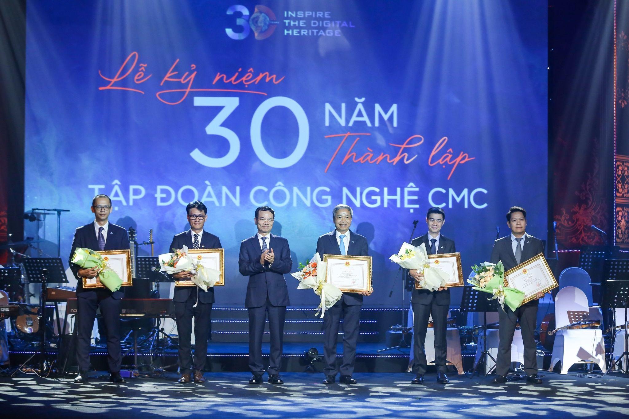 | Ông Đặng Ngọc Bảo, Tổng giám đốc CMC Global (người đầu tiên bên trái) vinh dự nhận Bằng khen của Bộ trưởng Bộ Thông tin và Truyền thông nhân kỉ niệm 30 năm thành lập Tập đoàn Công nghệ CMC |