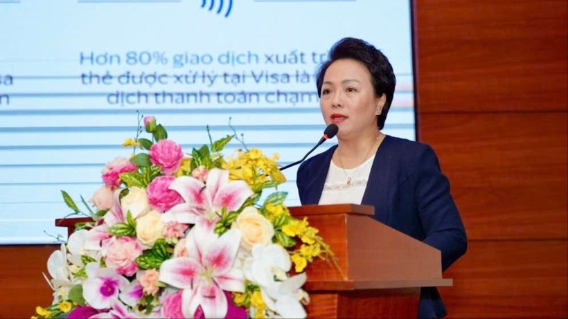 | Bà Đặng Tuyết Dung, Giám đốc Visa Việt Nam & Lào trao đổi tại Hội thảo |
