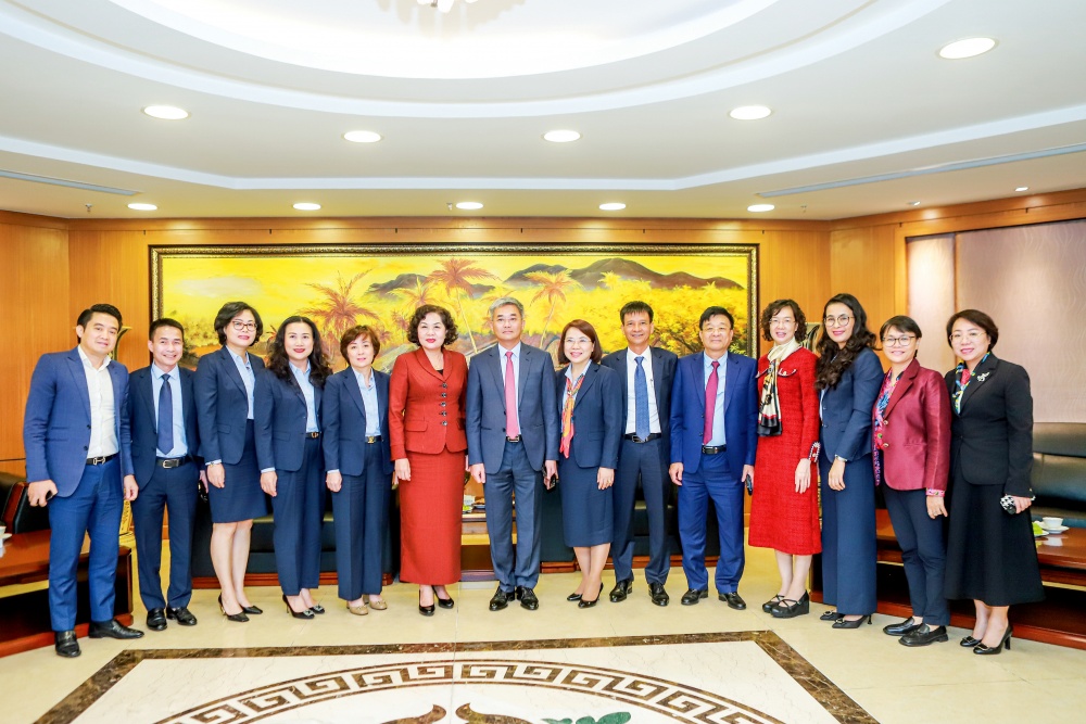 | Đồng chí Nguyễn Thị Hồng - Ủy viên Ban chấp hành Trung ương Đảng, Thống đốc NHNN Việt Nam và các đại biểu chụp ảnh lưu niệm cùng Ban lãnh đạo Co-opBank, tháng 1/2024 |