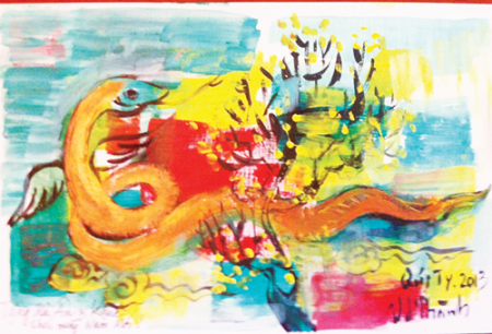 - Này! Ông ta vẫy tôi nhưng mắt lại nhìn về phía khác. Tôi thấy rờn rợn. Tay trái của ông ta thì cứ co sợi chỉ lên rồi hạ xuống, để điều khiển con rắn bò loằng ngoằng dưới chân. Ông ta vẫy tôi, chỉ vào con rắn rồi hỏi: “Có thích không?”.