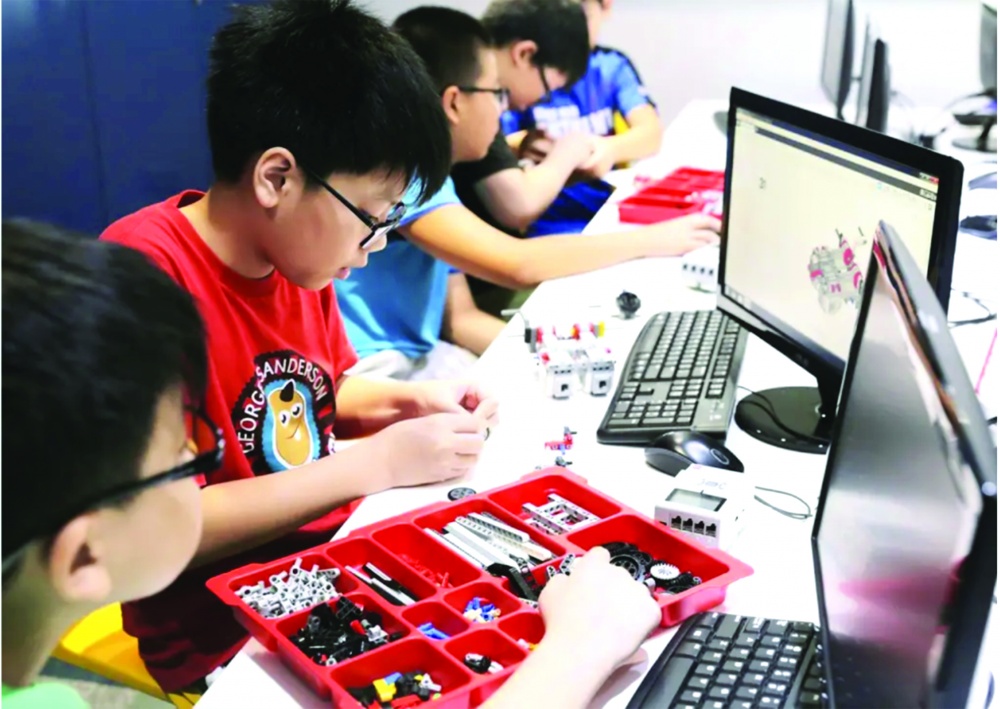 | Edtech phát triển mạnh sẽ tạo điều kiện đổi mới các hình thức học tập truyền thống (Học sinh tiểu học học lắp ráp mô hình lego thông min) |