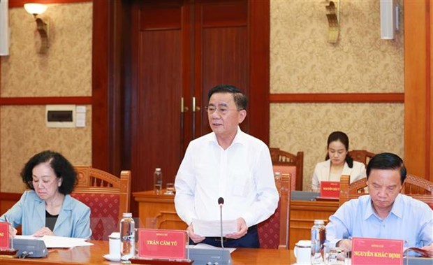 | Ủy viên Bộ Chinh trị, Bí thư Trung ương Đảng, Chủ nhiệm Ủy ban Kiểm tra Trung ương Trần Cẩm Tú phát biểu tại cuộc họp. (Ảnh: Phương Hoa/TTXVN) |
