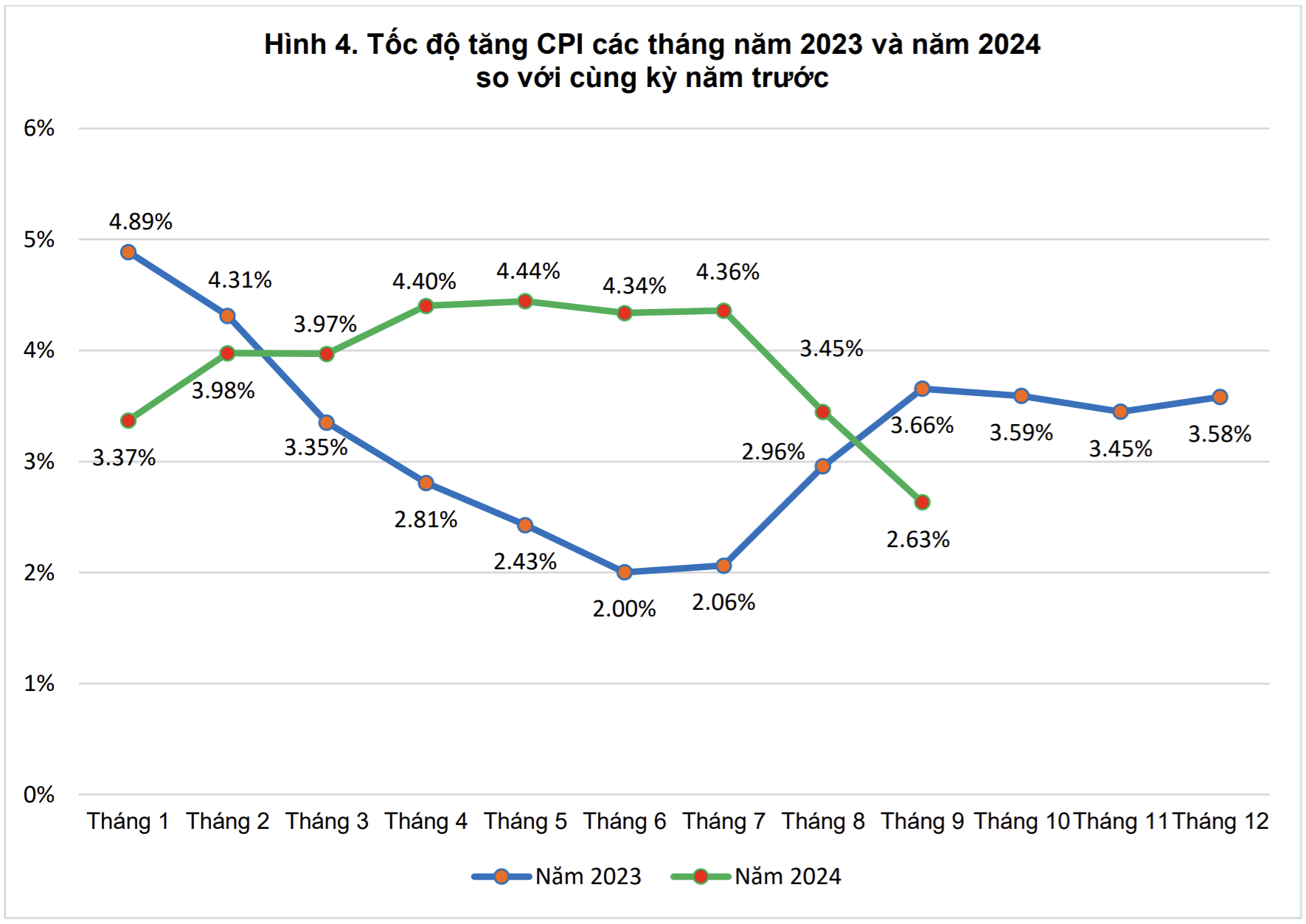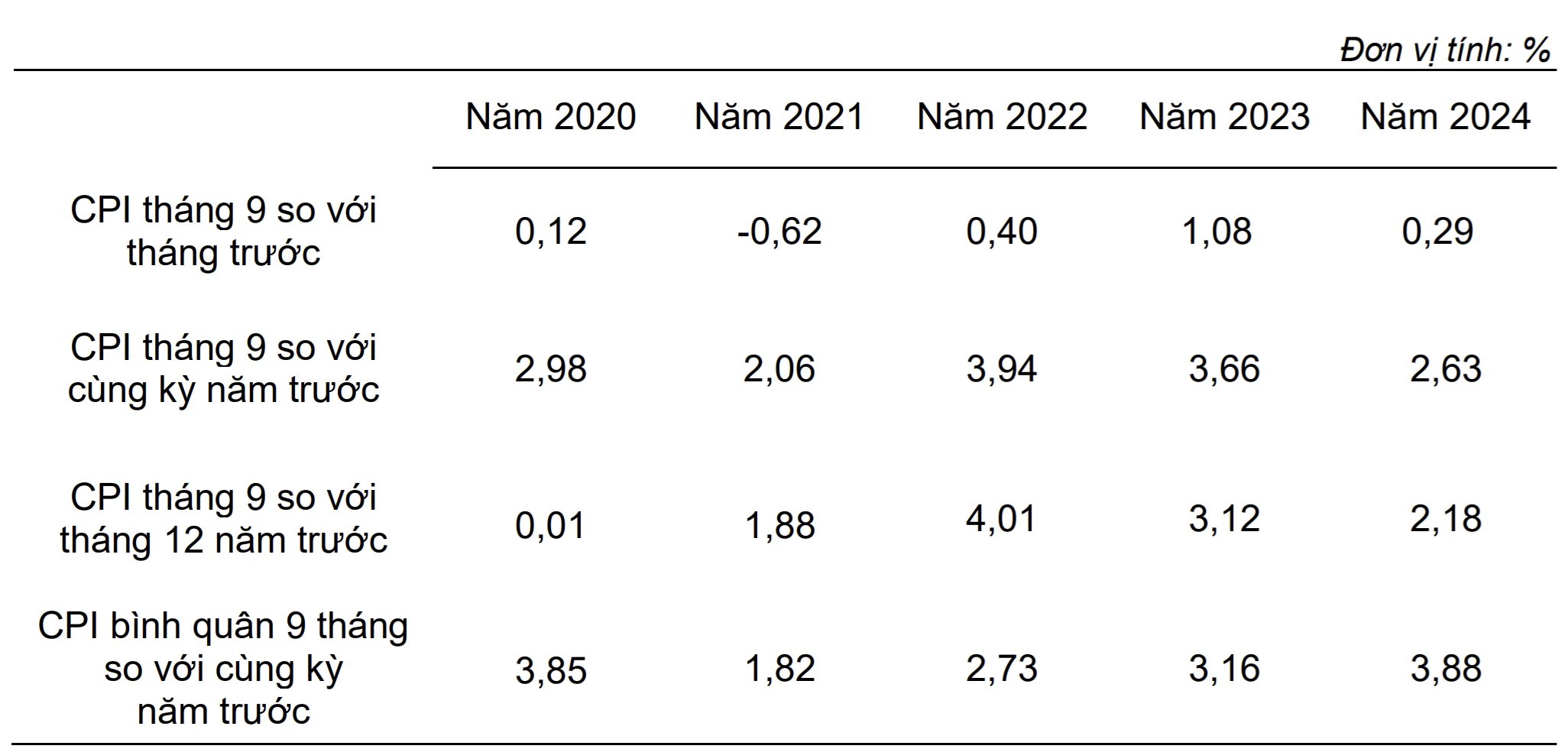 | Tốc độ tăng/giảm CPI tháng 9 từ năm 2020 đến năm 2024 |