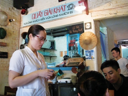 “Cửa hàng ăn uống mậu dịch” rộng chưa đầy 100m2, nhưng đã tái hiện được một cách tương đối không gian xưa cũ của một thời bao cấp, xếp hàng đặt gạch, tem phiếu, xe đạp Thống nhất, những chiếc ca sắt và bát sắt tráng men… Kế đó, cách ăn mặc của các cô “cửa hàng trưởng”, “mậu dịch viên” với áo phin nõn, quần đen cũng khiến không gian này trở nên khác biệt giữa thời đại kỹ thuật số. Và tất nhiên, đã gọi là cửa hàng ăn thì không thể thiếu những món ăn, nhất là những món ghi đậm dấu ấn của một thời đất nước còn cam khó: cơm độn khoai, bánh đúc, phở không người lái, phở trộn cơm nguội, dưa xào tóp mỡ… Chỉ cần nghe lại những món ăn này, một miền hoài niệm tưởng chừng ngủ yên trong những người đã sống qua thời “tem phiếu” lại được đánh thức. Nhà thơ Đàm Khánh Phương nghe tin cửa hàng mậu dịch vừa khai trương, cũng vội vã ra “thăm” để “sẽ dẫn bạn bè ra giới thiệu”. Tại đây, Đàm Khánh Phương cao hứng đọc bài thơ Gác xép ông từng viết về cái thời “không thể nào quên” của dân tộc: “Trang viết mới ra đời bên cót ép/ Loan tin ai, khao nhuận bút lần đầu/ Đem tất cả cho bạn bè ra Mậu Dịch/ Gom từng tờ tem gạo, uống - mừng nhau”.