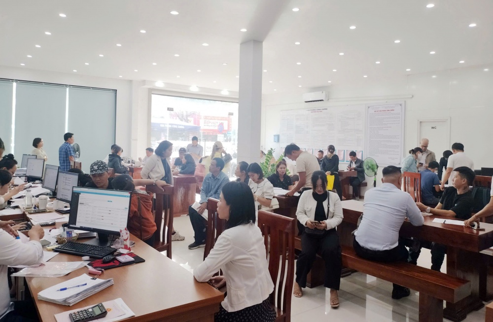 | Tại 1 phòng công chứng trên địa bàn Hòa Xuân lượng người đến công chứng chuyển nhượng Quyền sử dụng đất khá nhộn nhịp. |