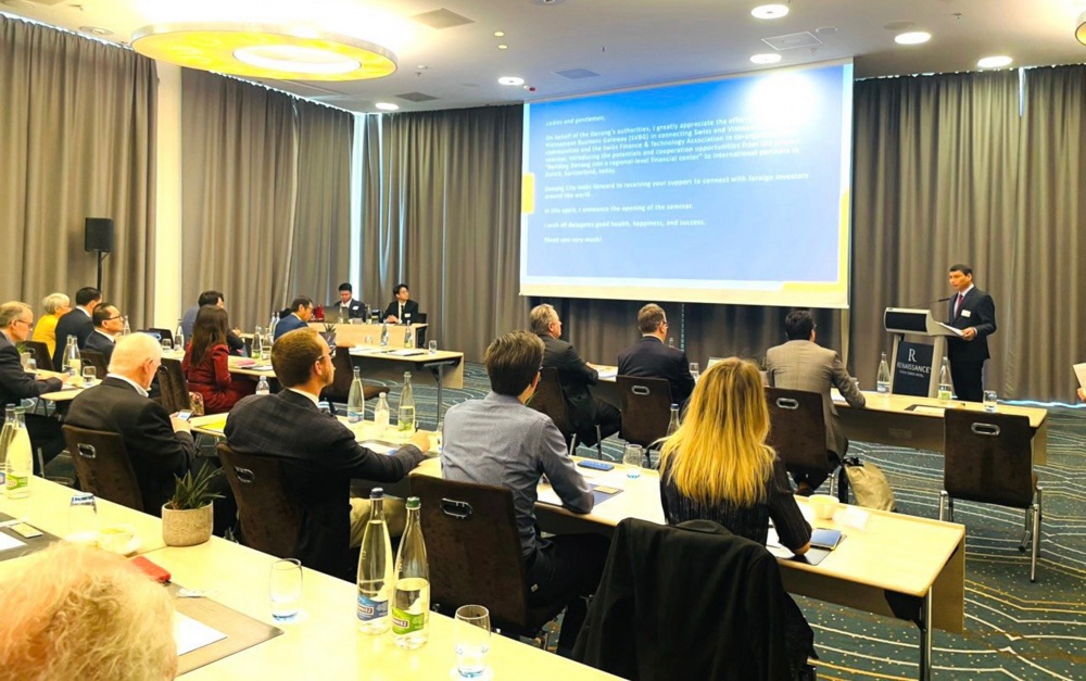Mới đây, trong khuôn khổ chuyến công tác tại Thuỵ Sỹ, Đoàn công tác TP. Đà Nẵng do ông Hồ Kỳ Minh, Phó Chủ tịch Thường trực UBND TP. Đà Nẵng làm Trưởng đoàn đã phối hợp Nhịp cầu Kinh doanh Việt Nam - Thụy Sĩ (SVBG) và Hiệp hội tài chính và công nghệ Thuỵ Sỹ (SFTA) tổ chức sự kiện “Đà Nẵng - Hướng tới một thành phố tài chính thông minh”.