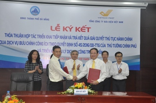 Theo đó, Tổng Công ty Bưu điện Việt Nam, Bưu điện Đà Nẵng ký kết thỏa thuận hợp tác cung ứng dịch vụ tiếp nhận hồ sơ, trả kết quả thủ tục hành chính qua dịch vụ bưu chính công ích. Các bên sẽ hợp tác để cung ứng dịch vụ tiếp nhận hồ sơ và trả kết quả giải quyết thủ tục hành chính qua dịch vụ bưu chính công ích; tổ chức, cá nhân có nhu cầu tự nguyện đăng ký sử dụng dịch vụ và trả cước phí chuyển phát theo quy định.