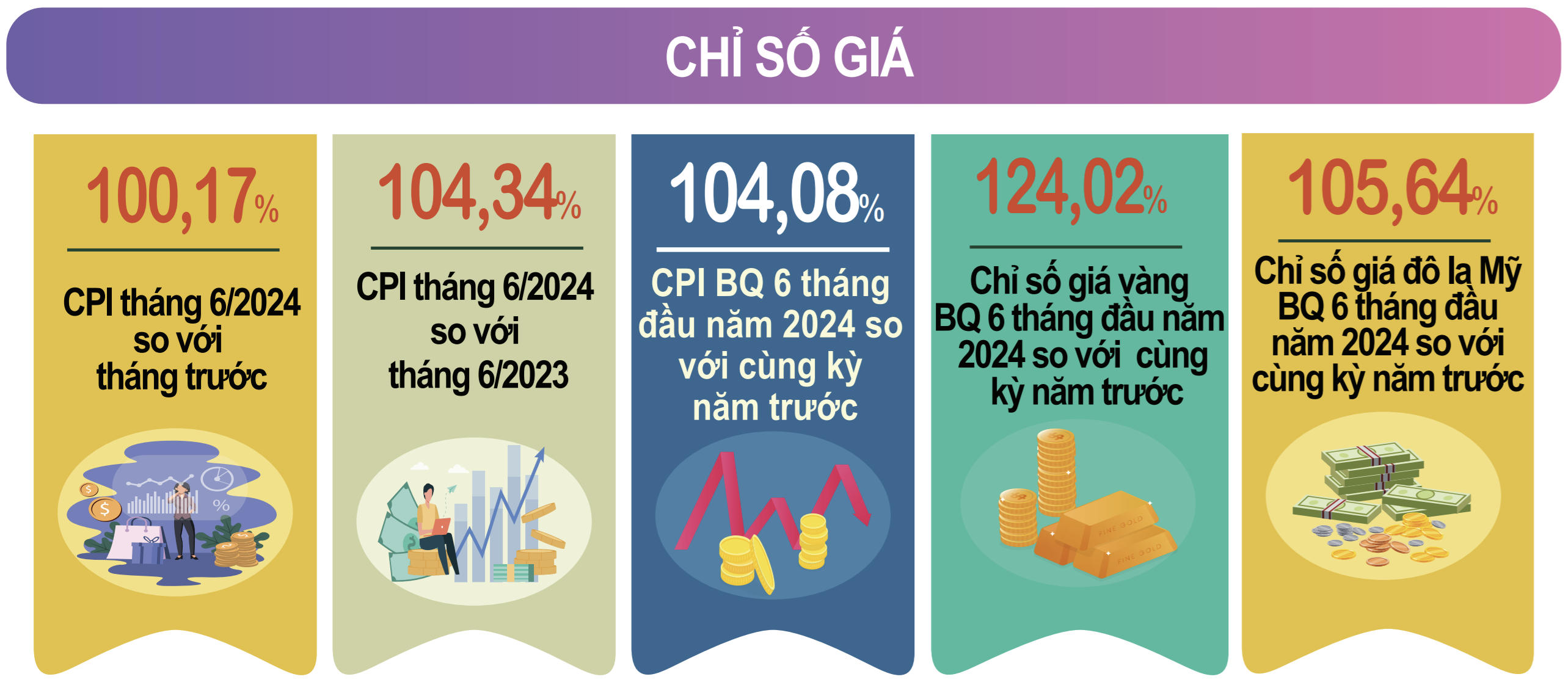 (i) Chỉ số giá nhóm hàng ăn và dịch vụ ăn uống bình quân sáu tháng đầu năm 2024 tăng 4% so với cùng kỳ năm trước (tác động làm CPI chung tăng 1,34%). Trong đó, chỉ số giá: Nhóm lương thực tăng 15,76%, tác động làm CPI tăng 0,58%, trong đó giá gạo tăng 20,98% theo giá gạo xuất khẩu và nhu cầu tiêu dùng tăng trong dịp lễ, Tết, làm CPI chung tăng 0,53%; nhóm thực phẩm tăng 2,05%, làm CPI chung tăng 0,44%; nhóm ăn uống ngoài gia đình tăng 4,13%, làm CPI chung tăng 0,36% do nhu cầu tăng cùng với giá nguyên liệu đầu vào và chi phí nhân công tăng.