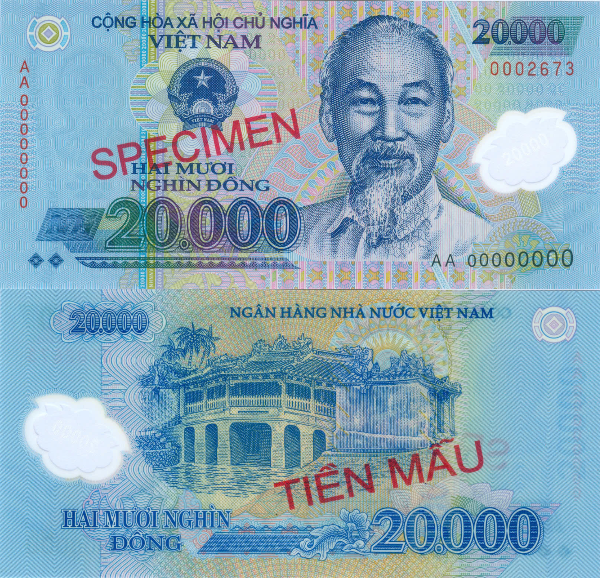 Bên cạnh đó, tờ 20.000 đồng còn có các đặc điểm bảo an như: Dây bảo hiểm, yếu tố in lõm, số seri dọc và ngang phát quang, hình định vị, mảng chữ siêu nhỏ…