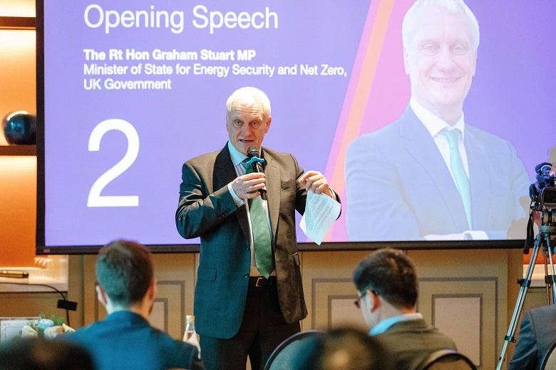 Đại sứ Anh tại Việt Nam, Iain Frew nhấn mạnh: “Vương quốc Anh cam kết hỗ trợ Việt Nam chuyển đổi sang một tương lai phát thải ròng bằng ‘0’, chống chịu với biến đổi khí hậu và thuận thiên.