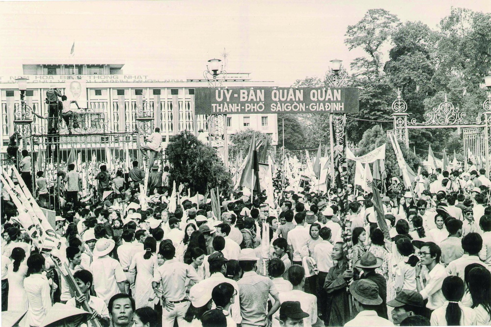 | Người dân tham gia cuộc mít tinh mừng Ủy ban Quân quản thành phố, ngày 7/5/1975 |