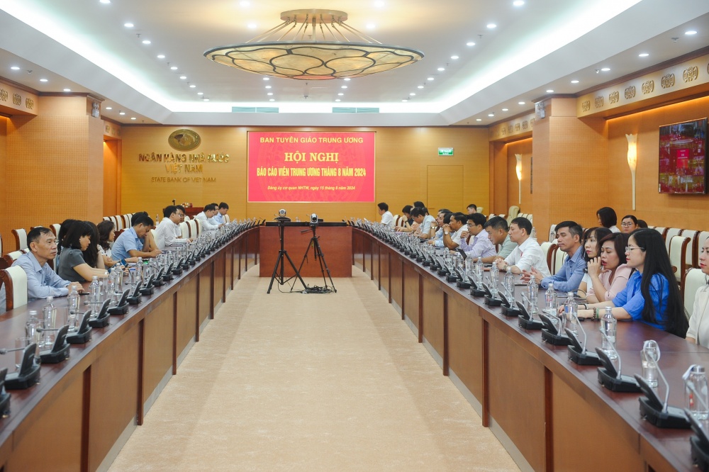 Đảng ủy cơ quan NHTW tham dự trực tuyến Hội nghị báo cáo viên trung ương tháng 8/2024