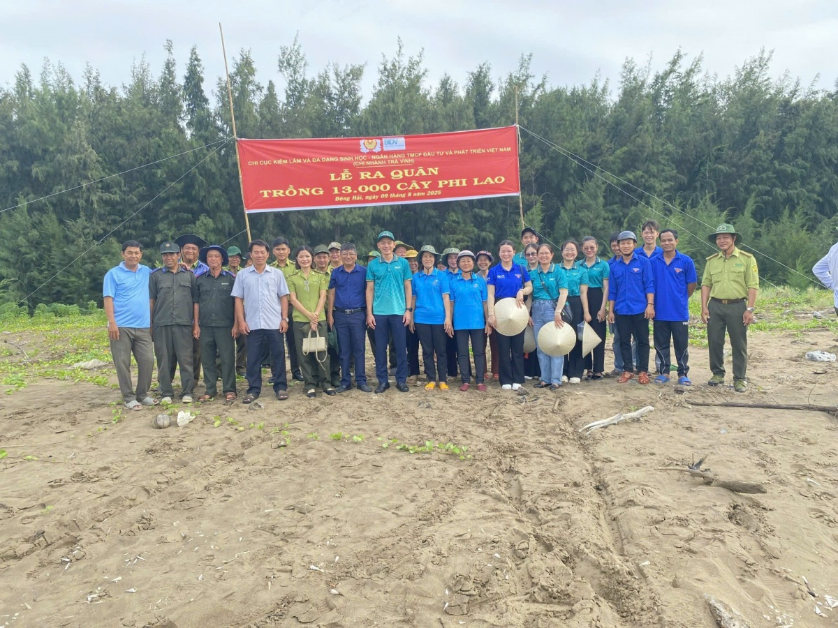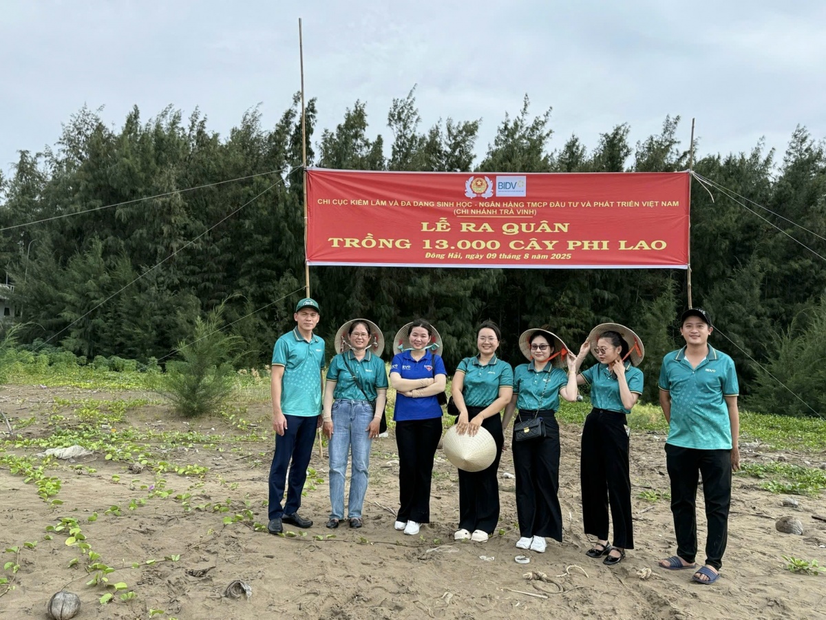 Gần đây rừng phòng hộ ven biển tại tỉnh Vĩnh Long (Bến Tre trước đây) đang đối mặt với nhiều thách thức nghiêm trọng như tình trạng sạt lở, tác động từ biến đổi khí hậu, xâm nhập mặn... Trong tháng 8 này, Công đoàn BIDV đã hỗ trợ kinh phí trồng 14.520 cây phi lao và 13.110 cây bần chua tại các xã Thới Thuận, Thạnh Phước, Bảo Thạnh với tổng kinh phí gần 500 triệu đồng. Các đoàn viên Công đoàn BIDV Bến Tre đã trực tiếp tham gia, không quản nắng mưa, góp sức cùng lực lượng địa phương khôi phục mảng xanh phòng hộ.