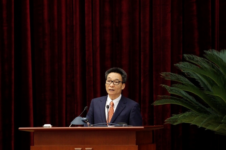 | Ủy viên Trung ương Đảng, Phó Thủ tướng Chính phủ Vũ Đức Đam thay mặt Ban Cán sự Đảng Chính phủ trình bày Chương trình hành động của Chính phủ thực hiện Nghị quyết. |