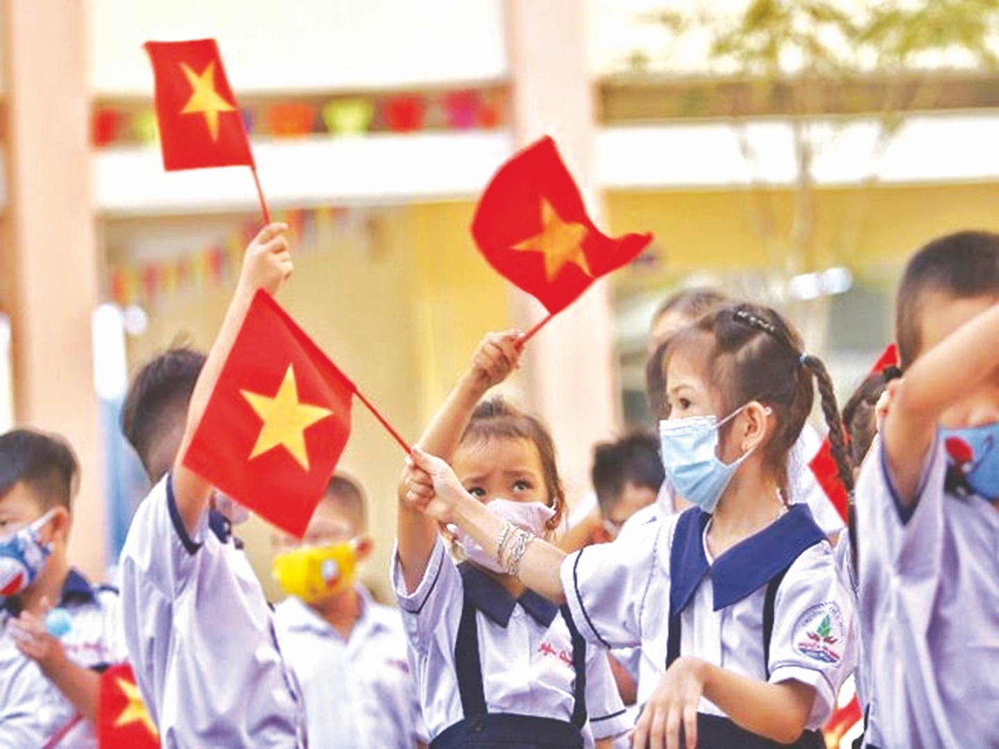 | Học sinh hồ hởi bước vào năm học mới. |