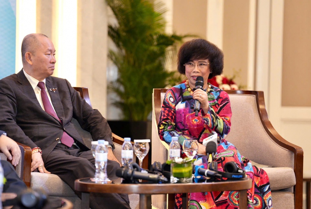 | Bà Thái Hương - Anh hùng Lao động, Tổng Giám đốc NHTMCP Bắc Á, Chủ tịch Hội đồng Chiến lược Tập đoàn TH - trao đổi tại phần bàn tròn thảo luận |