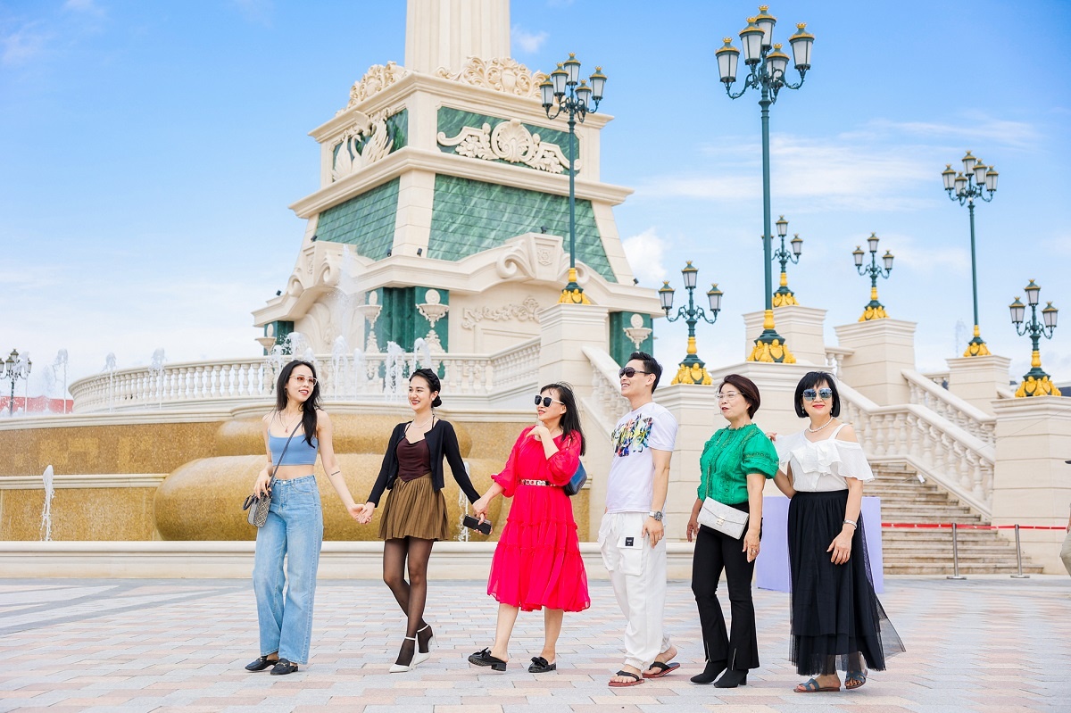 Hai bên đại lộ của khu phố đi bộ - tâm điểm phân khu Ánh sáng - là những dãy biệt thự nhà phố sầm uất mang phong cách Pháp cổ, nổi bật bởi những khối nhà cô đọng, tường mặt ngoài được cách tân theo hình ô gạch, kết hợp mái Mansard đặc trưng và những ô cửa sổ vuông, cửa sở vòm rộng lớn, mô phỏng theo khu phố thương mại nổi tiếng Champs Élysées. Mỗi một góc trên con phố này đều có thể kể là một góc check in sống động thoả mãn sở thích sống ảo của du khách