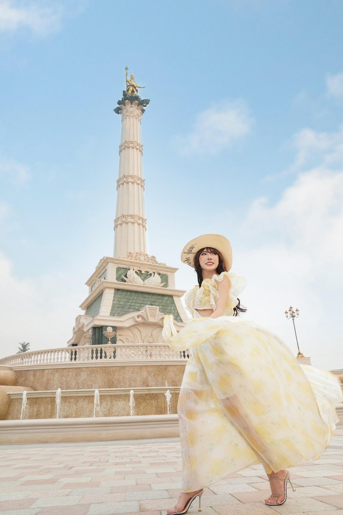 Những tiểu cảnh bên trong Quảng trường Kinh đô Ánh sáng như các bức tượng Thần Vệ nữ, Thần Tình yêu duyên dáng bên cạnh hàng cọ xanh, xa xa là tháp ánh sáng đồ sộ mang biểu tượng cho sự phồn thịnh tạo nên những bức hình lộng lẫy không thể tìm thấy ở nơi nào khác.