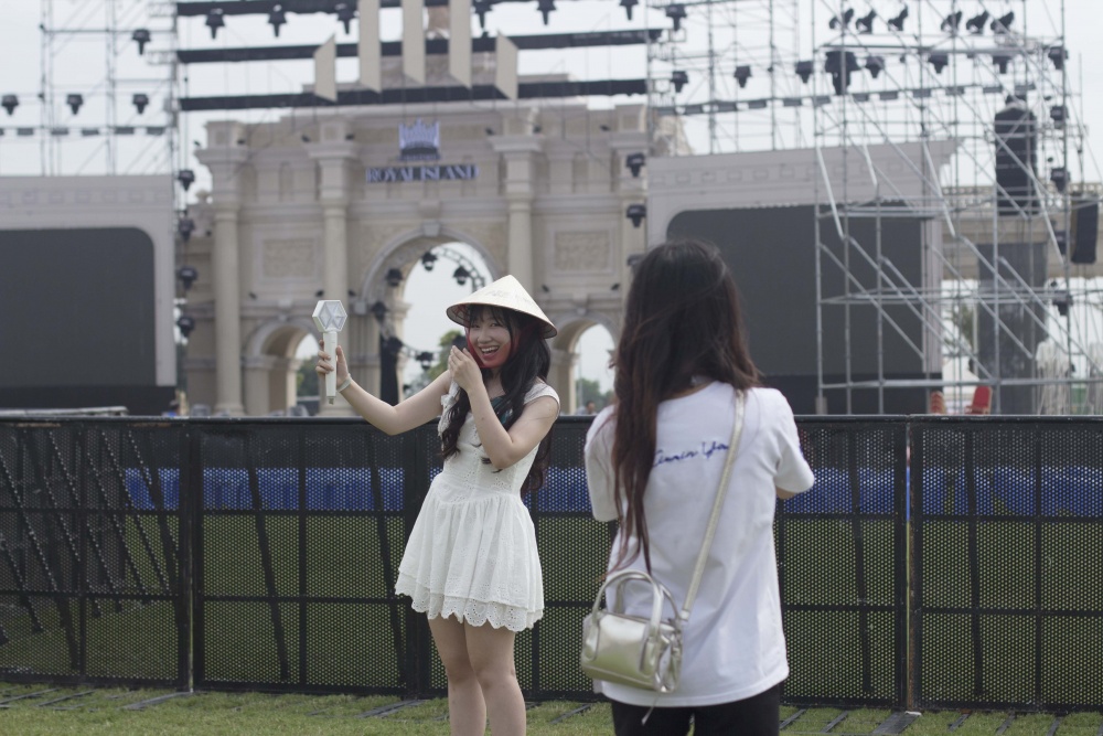 | Các bạn trẻ háo hức check-in tại khu vực sân khấu đại nhạc hội Wonder Island |