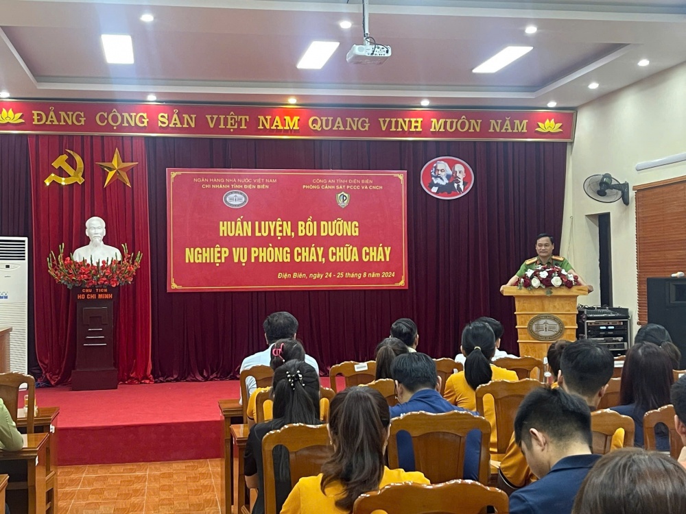 Tại chương trình huấn luyện, phòng Cảnh sát PCCC và CNCH Công an tỉnh Điện Biên đã phổ biến các văn bản quy phạm pháp luật về PCCC, CNCH; trang bị các kiến thức cơ bản về PCCC và CNCH. Đồng thời, hướng dẫn cho công chức, nhân viên ngành Ngân hàng nắm bắt được đặc điểm, tính chất nguy hiểm cháy, nổ; công tác cứu nạn, cứu hộ. Từ đó, đề ra các biện pháp, giải pháp bảo đảm công tác PCCC, CNCH phù hợp với tính chất hoạt động của cơ sở, vận dụng thực hiện tốt công tác phòng ngừa, hạn chế đến mức thấp nhất nguy cơ và thiệt hại do cháy, nổ, tai nạn có thể xảy ra.