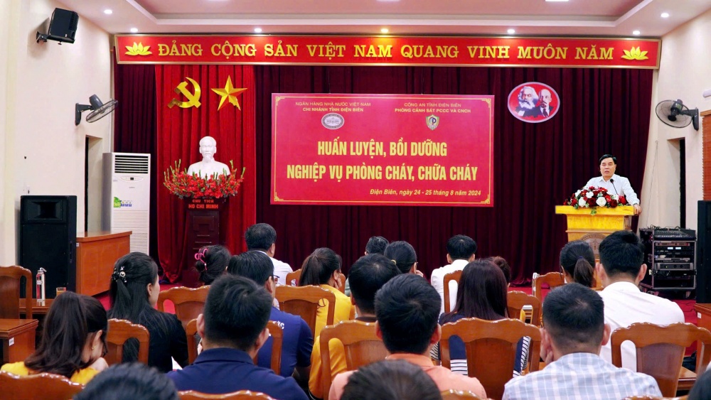 Dự Hội nghị khai mạc chương trình huấn luyện có đồng chí Thượng tá Nguyễn Văn Thưởng – Phó Trưởng phòng Cảnh sát PCCC và CNCH Công an tỉnh Điện Biên; đồng chí Nguyễn Quốc Tùng – Giám đốc và các trưởng phòng NHNN chi nhánh tỉnh Điện Biên, đại diện lãnh đạo các ngân hàng, TCTD trên địa bàn tỉnh và 75 công chức, nhân viên của các ngân hàng trên địa bàn.