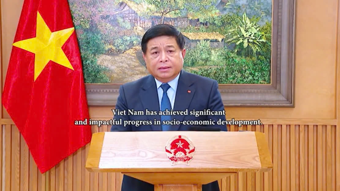 | Phó Thủ tướng Nguyễn Chí Dũng phát biểu chỉ đạo trực tuyến tại diễn đàn ngày 16/5. (Ảnh: NIC) |