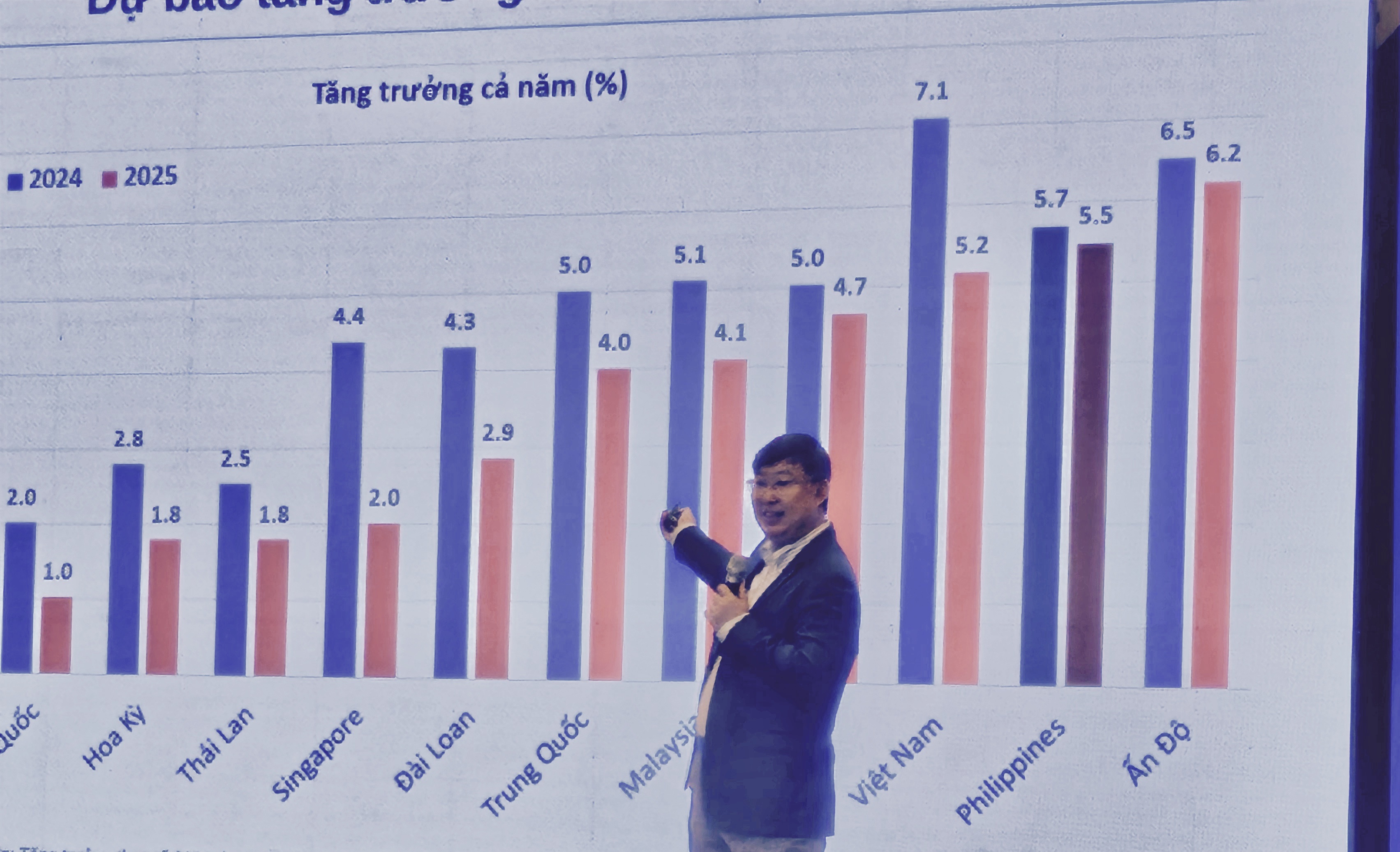 | Ông Nguyễn Xuân Thành, chuyên gia kinh tế từ Fulbright, phân tích các chỉ số kinh tế tại Diễn đàn |