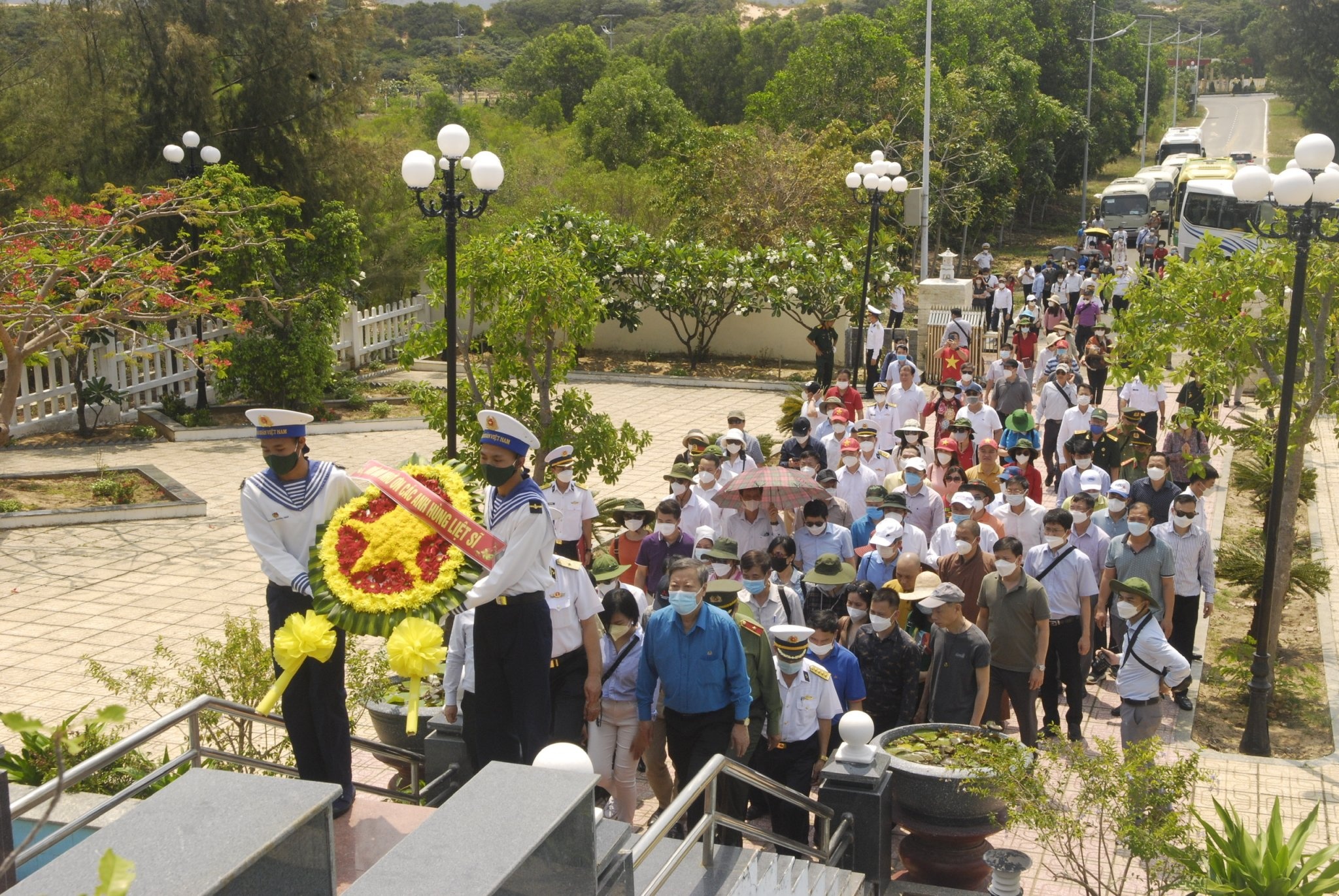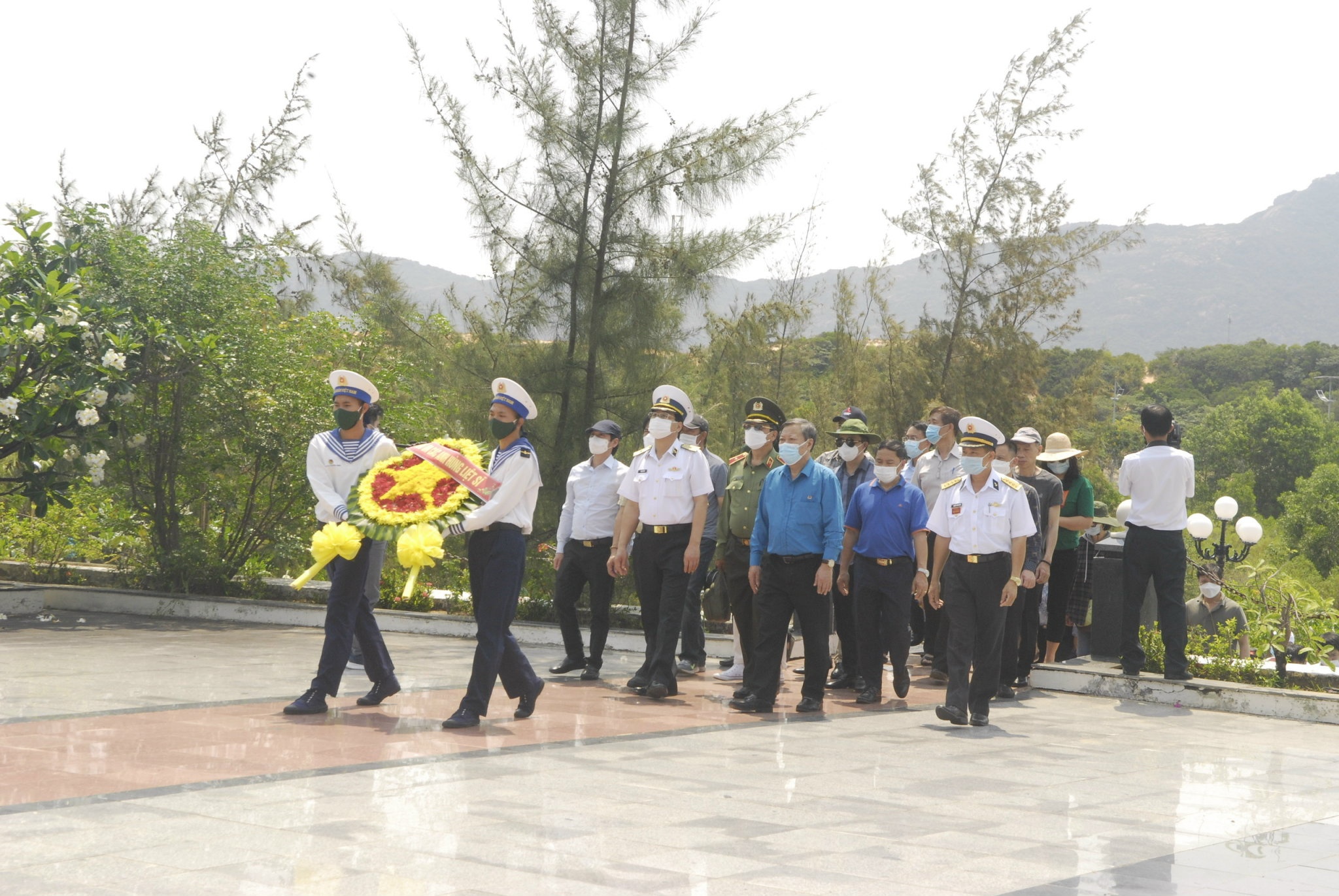 Tại buổi lễ, Đoàn công tác đã dâng hương, kính cẩn nghiêng mình tưởng nhớ trước anh linh các Anh hùng liệt sĩ đã chiến đấu, hy sinh bảo vệ chủ quyền vùng biển, vùng trời thiêng liêng của Tổ quốc.