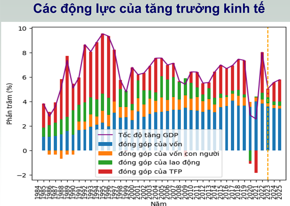 Vị Phó giáo sư cũng nhấn mạnh, các chính sách sắp tới không những hướng tới nâng cao hiệu quả của vốn và chất lượng lao động mà còn cần đầu tư thay đổi công nghệ để thúc đẩy nhanh tăng trưởng kinh tế trong dài hạn.