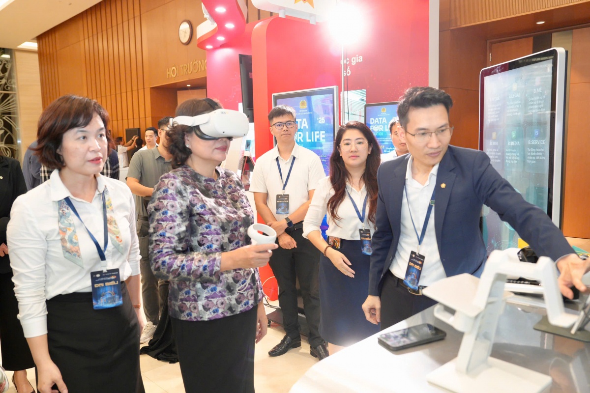 | Thống đốc NHNN Nguyễn THị Hồng tham quan gian hàng BIDV tại sự kiện Chuyển đổi số ngành Ngân hàng năm 2025 |