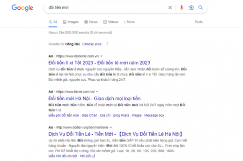 Chỉ cần gõ cụm từ "đổi tiền lẻ," "đổi tiền mới" lên thanh tìm kiếm của các trang mạng xã hội như Facebook, Zalo hay trên Google..., ngay lập tức người dùng sẽ nhận về hàng nghìn bài viết công khai dịch vụ đổi tiền với những lời quảng cáo có cánh "loại gì cũng có, đủ tờ, nguyên serie, nguyên cọc, phí rẻ".