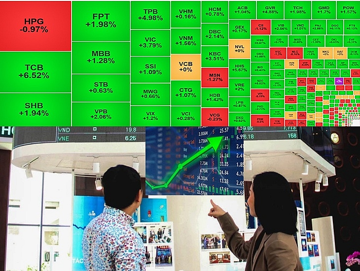 | Dòng tiền mạnh mẽ, VN-Index bứt phá gần 14 điểm Cổ phiếu ngân hàng dẫn dắt thị trường |